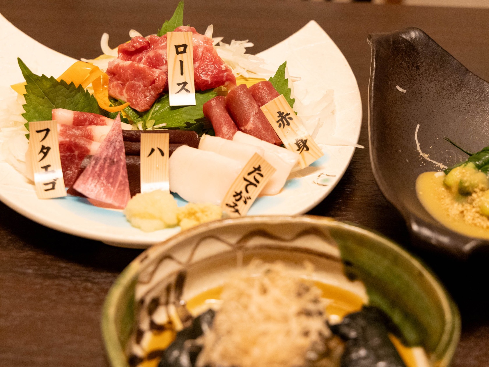 夕食は新鮮な馬刺しやからし蓮根など、熊本ならではの郷土料理に舌鼓。サウナ後の体に染みわたる一杯も格別です。