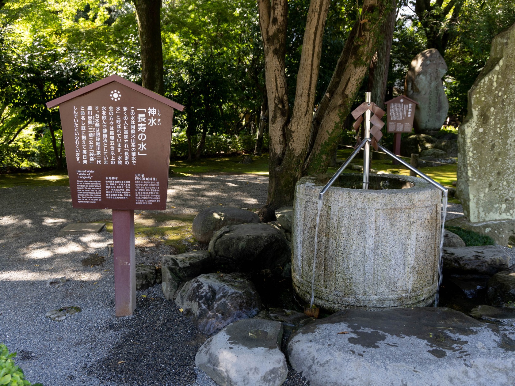 • 神水「長寿の水」:阿蘇の伏流水が湧き出るパワースポット。