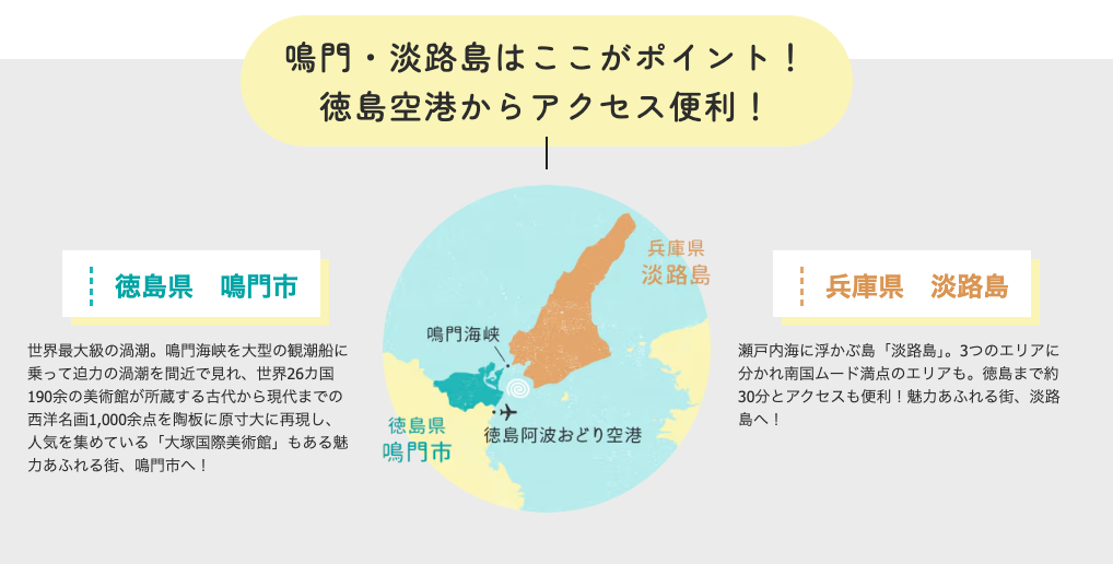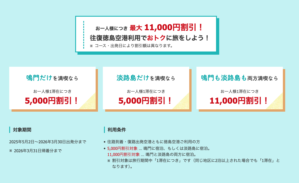 そして今なら、徳島空港を利用して淡路島に宿泊するとお得なキャンペーンを実施しておりますので、よろしければ是非こちらも合わせてご覧ください!