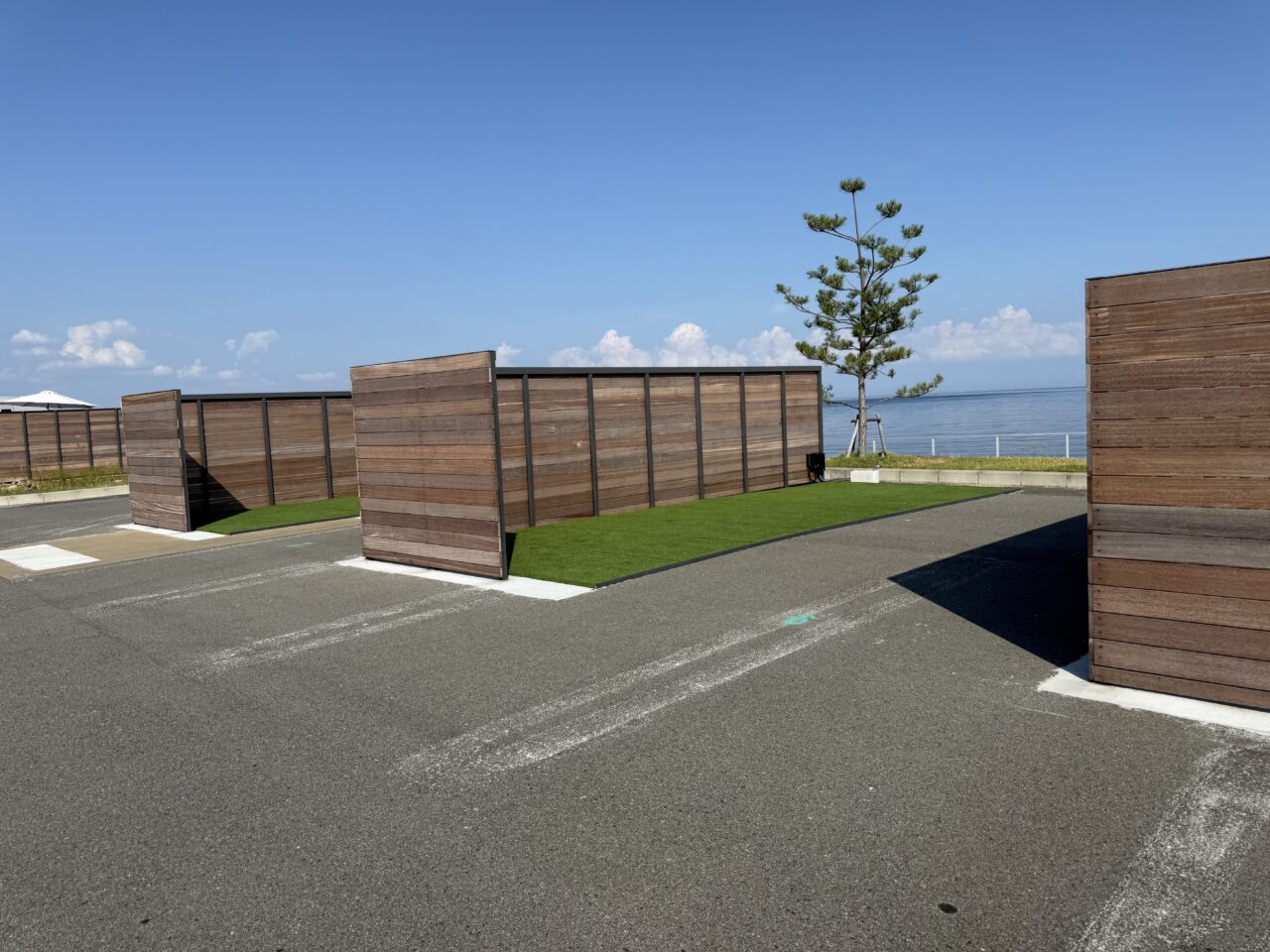 海側のプライベートサイトでは、全7区画を木の壁で仕切り、電源設備とWi-Fiを完備。