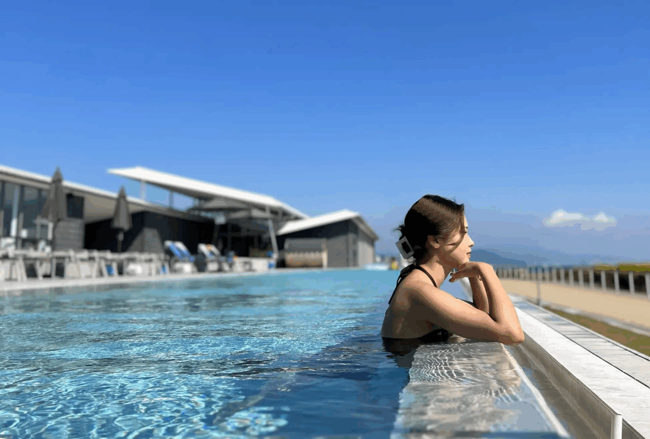 まずこの会場の説明をさせていただきますと、海を目の前にした温泉水のインフィニティプールも楽しめたり(10月でも人肌程度の温度で暖かいです)