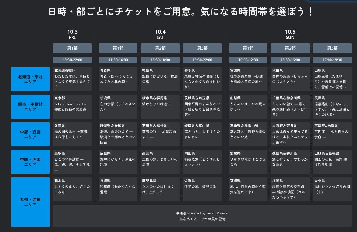 今回のイベントでは、全国の観光資源とサウナの掛け合わせをテーマにしており、サウナ内の香りや演出は全て異なる形でご用意しております。