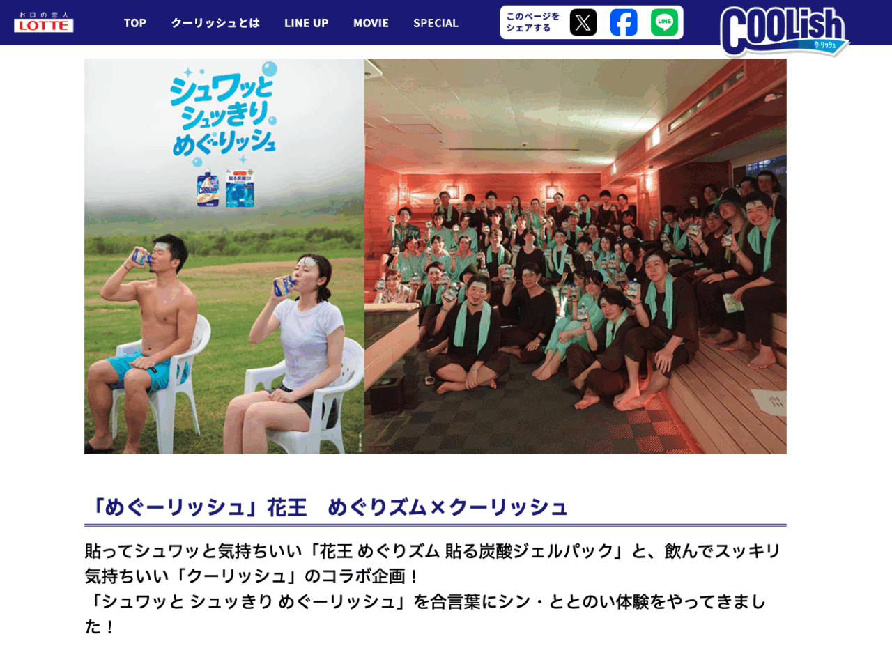 担当の方が「めぐりズムを貼りながらクーリッシュを飲んだらチョーーー気持ちいいのでは!?」と考えたコラボ企画になっており、みなさまにもサウナ後に体験いただくべく、無料でお配りさせていただきます。