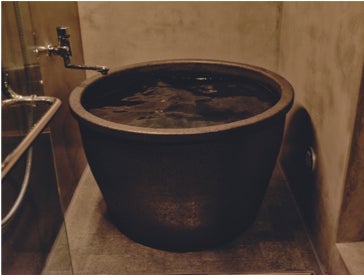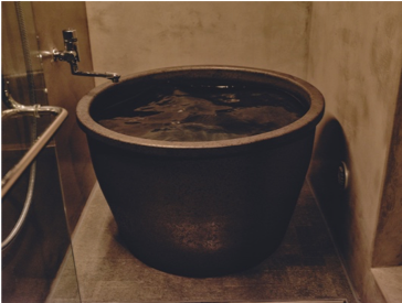 パーソナル・サウナ KUU は、個室サウナとしては珍しく全室に水風呂完備。KUU のためのオリジナルの陶器は信楽焼(しがらきやき)。信楽焼本来の風合いをそのままに成形から焼成まで職人の手作業で作られています。