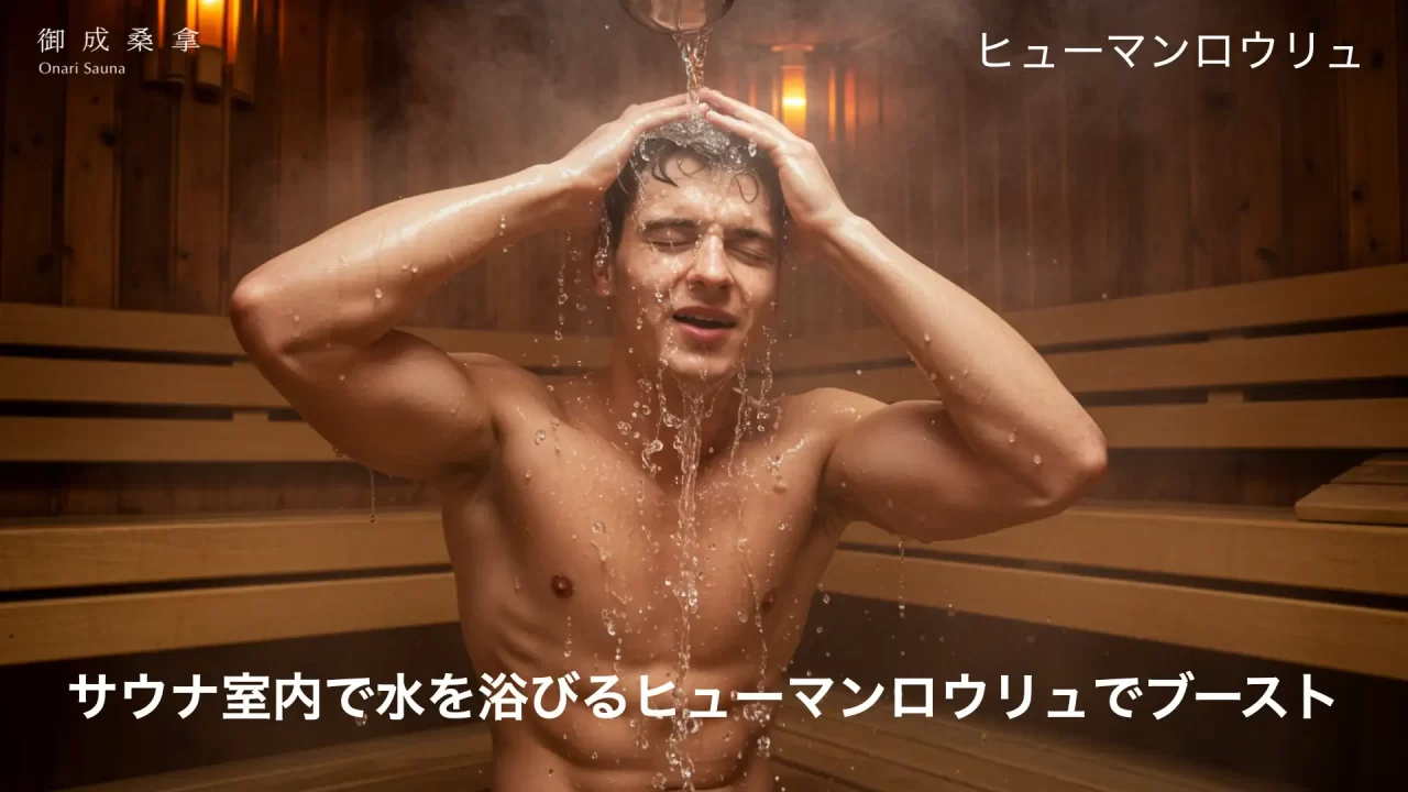 ヒューマンロウリュとは、体温と心拍数が上昇する退出のタイミングで全身に冷水をかけることで、サウナ内で一時的なクールダウンを行う行為のこと。