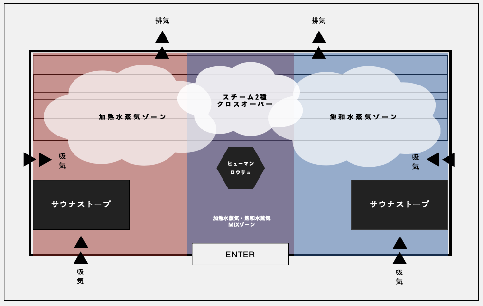 サウナに欠かせない「蒸気」に流れをつくることで、熱伝導と湿度の理想的な環境を実現しています。