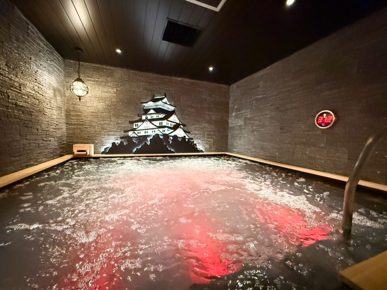 水風呂には、虎のモチーフを使ったデザインが掲げられ、大阪らしさを感じるユーモアな雰囲気があります。