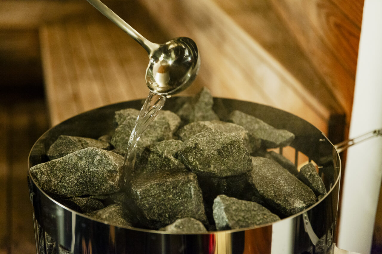 香り高いお茶を使用したセルフロウリュが可能。また、壁に水をかけて蒸気を発生させる「ウォーリュ」により、前後左右からアロマと蒸気が空間全体に広がります。