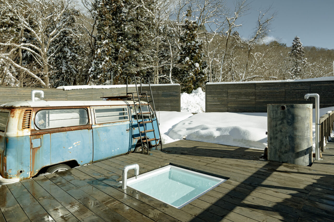 WAYPOINTを象徴とするのが、ヴィンテージバンを改造した唯一無二の水風呂。