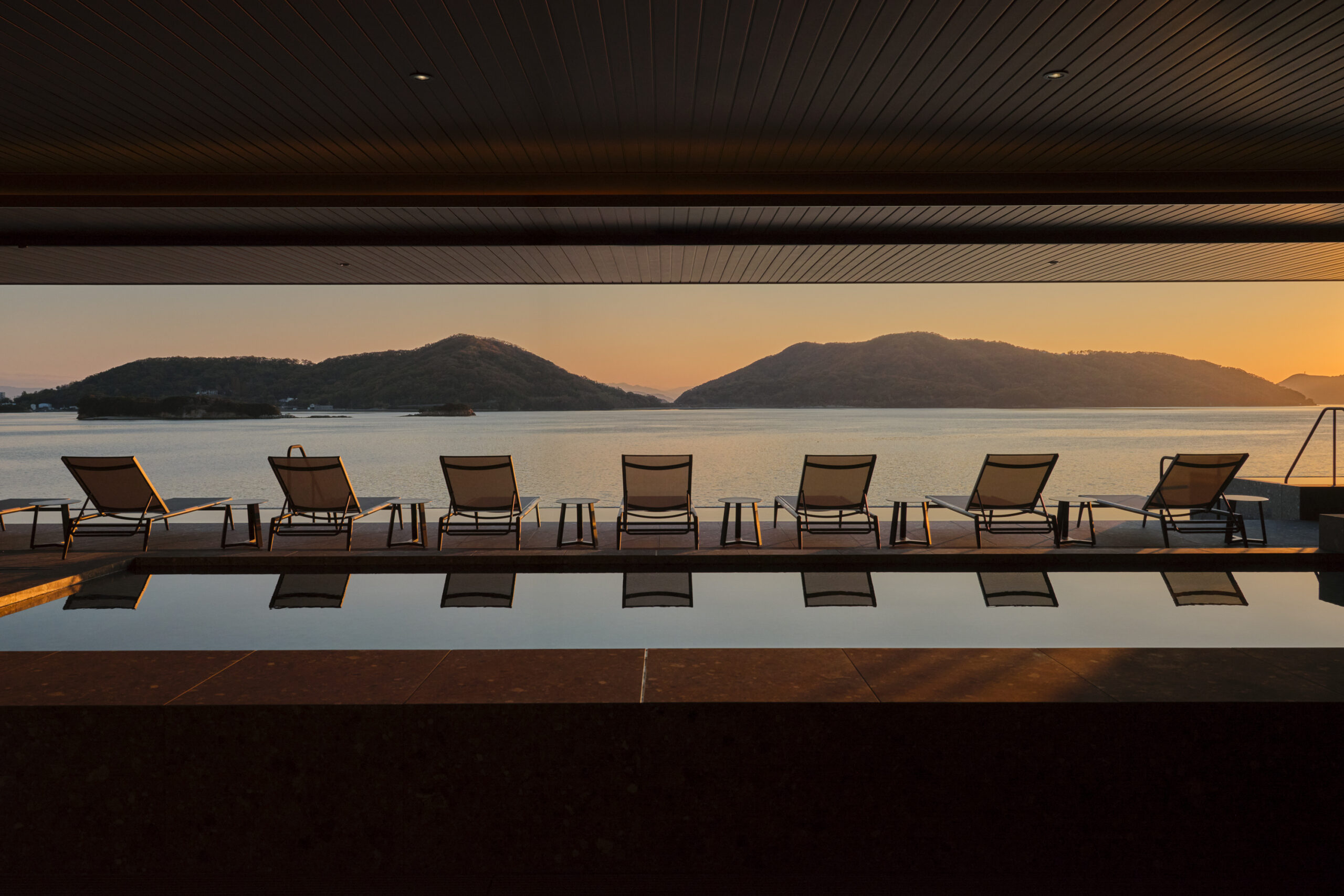 まずは安定のインフィニティチェア。目の前のプールをぼ〜っと眺めながら、ゆったりと休憩できるスポット。