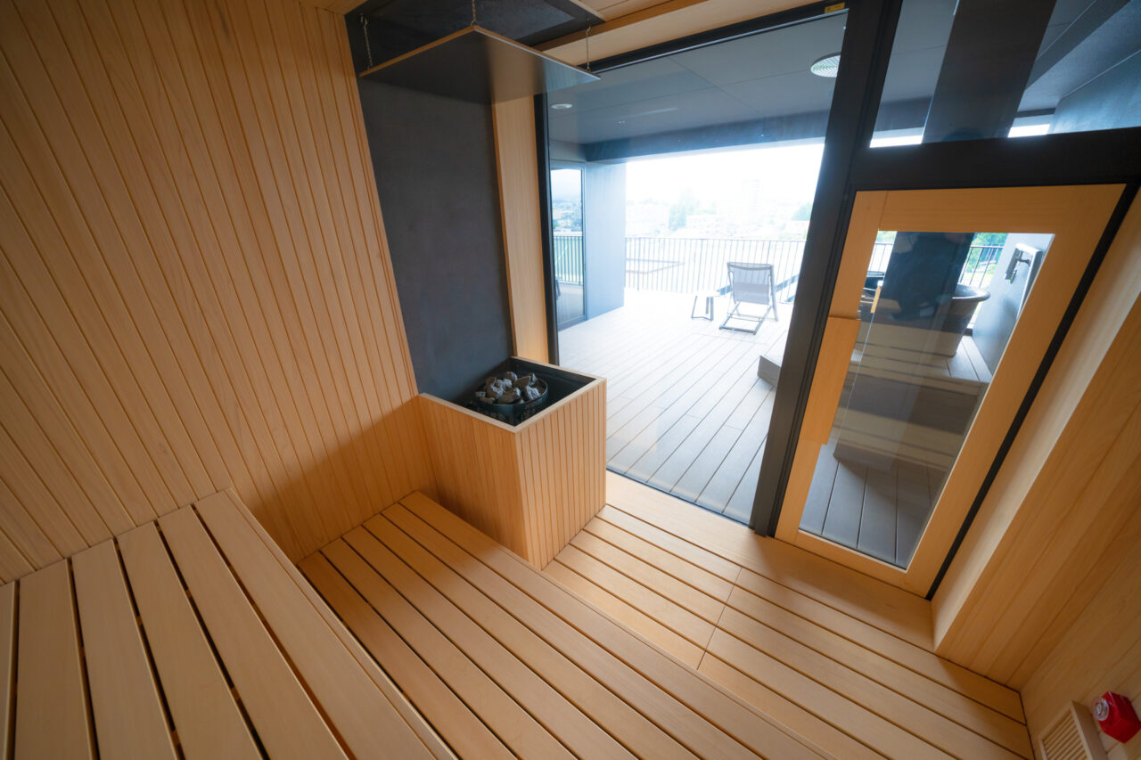 そんなすごすぎる部屋にも本格的なサウナ室がついています。