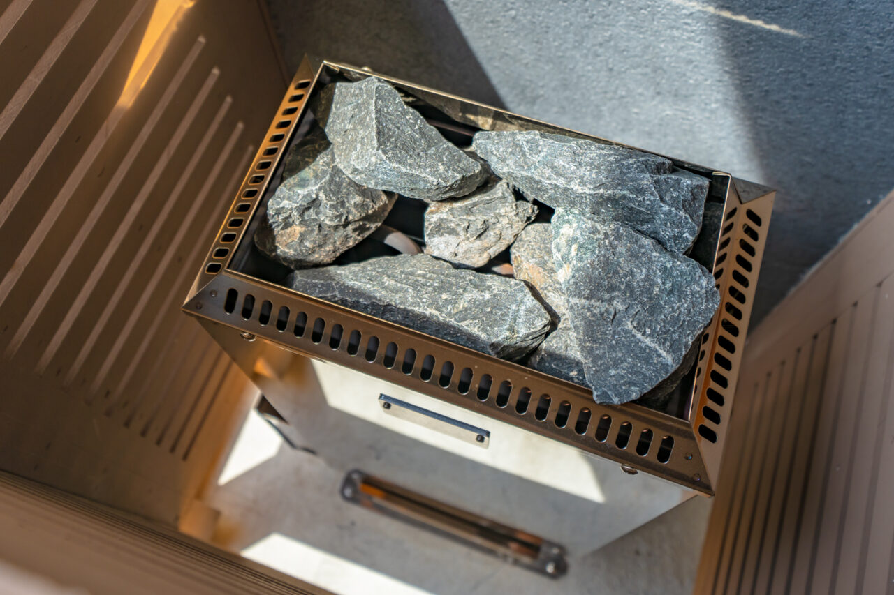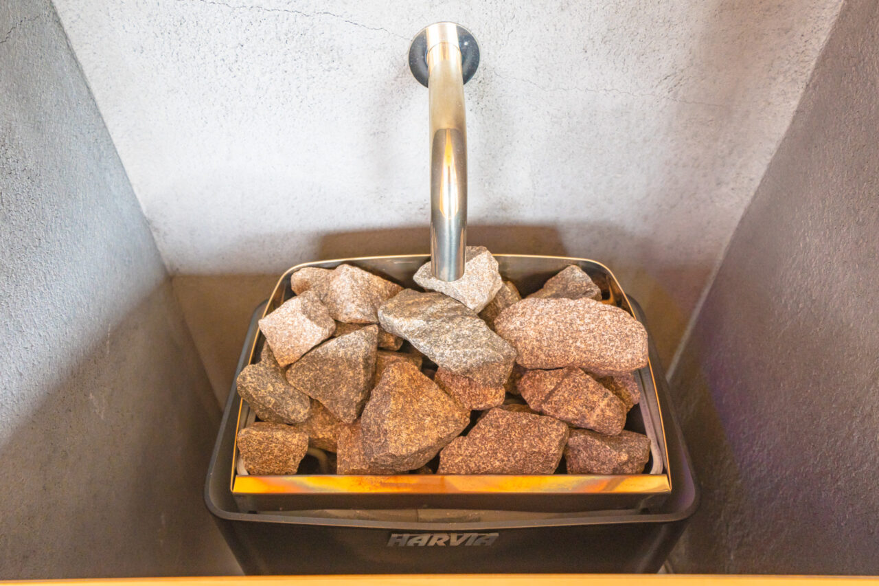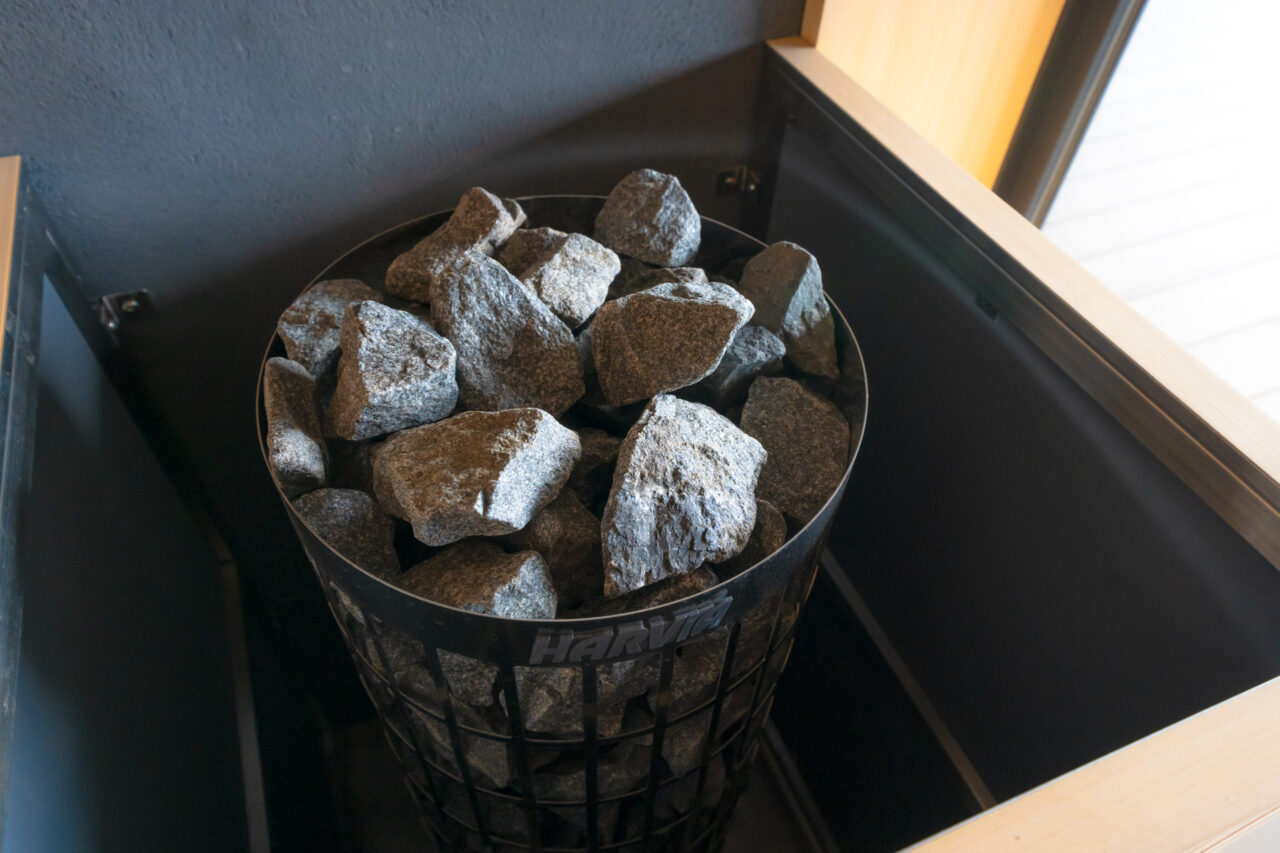 フィンランド製の強力サウナストーブ&セルフロウリュで、グループ全員しっかりあったまれます。