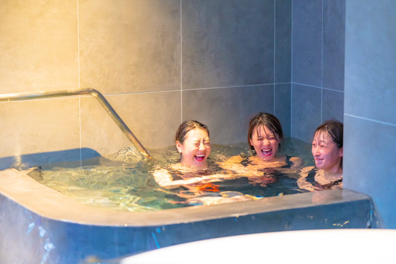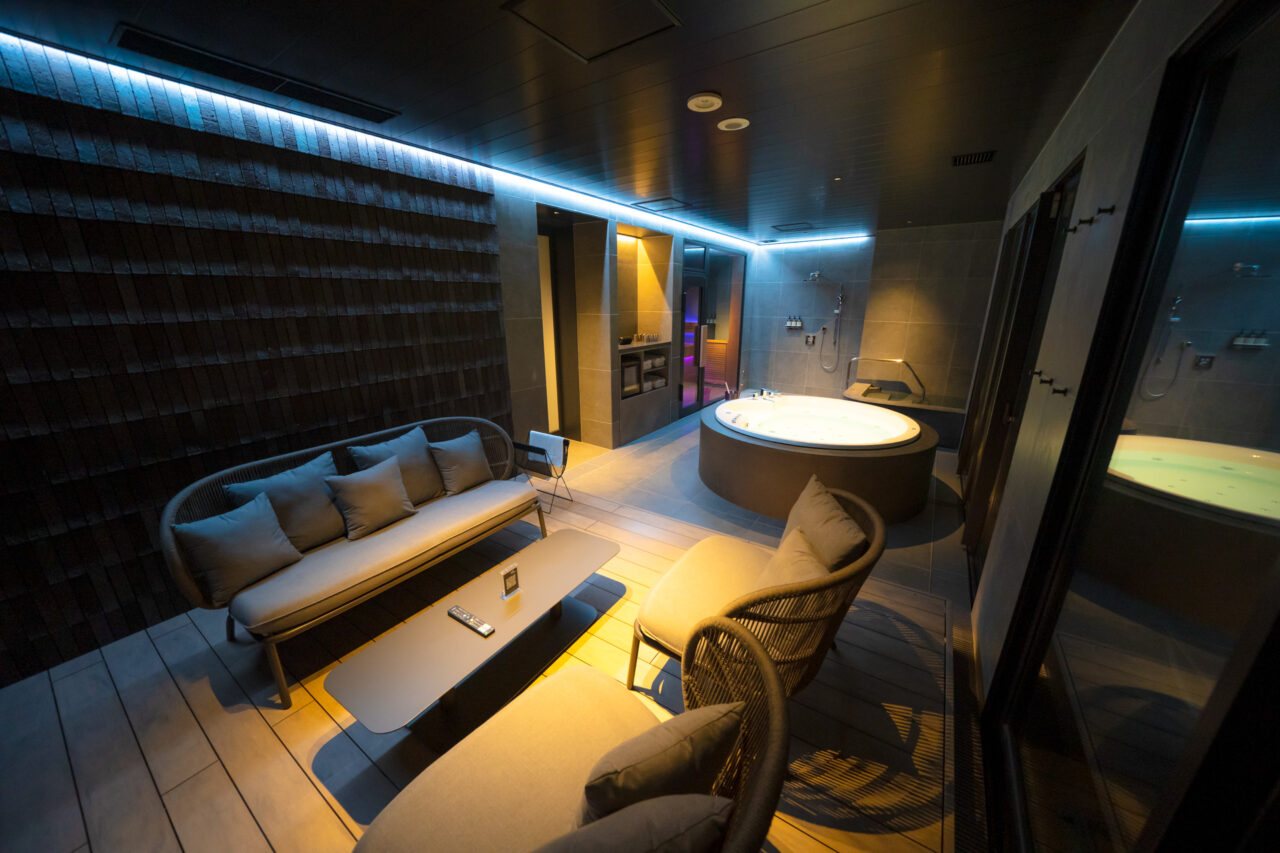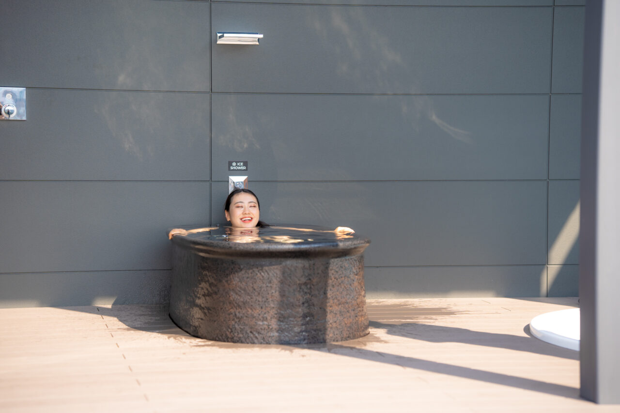 深さ90cmの水風呂、外気浴のできるテラス、温浴用のジャグジー、ソファスペースも用意されており、一連の体験を通してサウナーの欲求を全て満足させるような設計になっています。