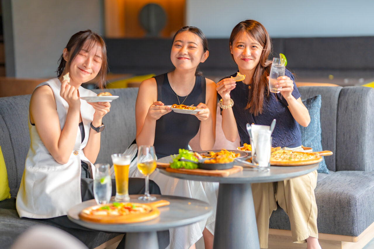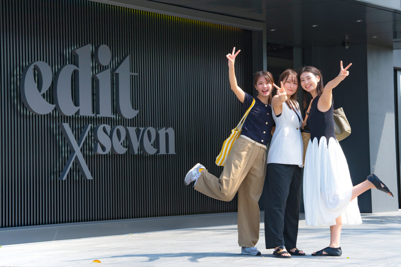 今回はJALの客室乗務員の中で、かなりの本格的サウナーで色々な場所でサ旅をしている3人(左から なっち、ちーたま、きむち)が、オープン直前に体験取材させてもらいましたので、実際の感想とあわせてedit x seven 富士御殿場の魅力をご紹介します。
