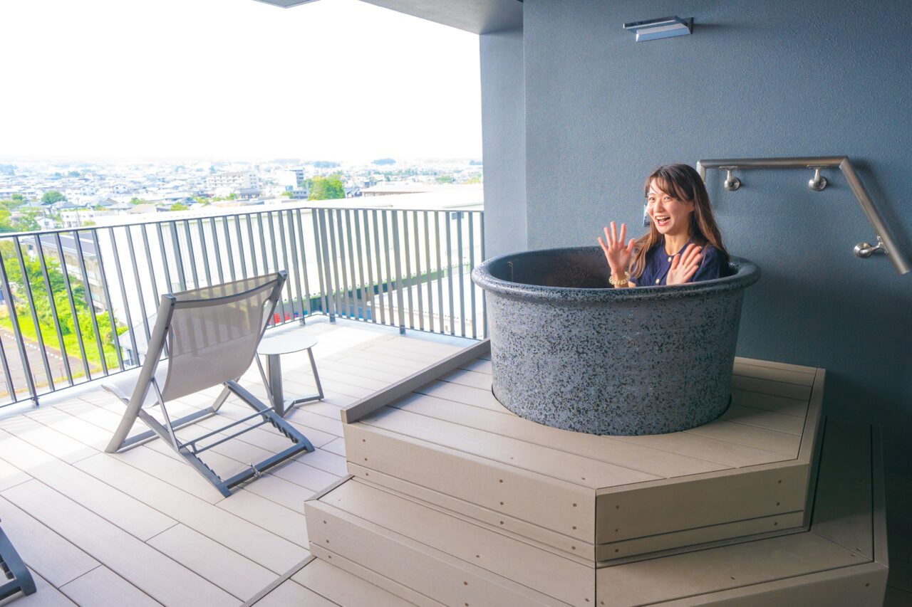 なんといっても特徴はこの、部屋と同じくらいの広ーい外気浴テラスです。