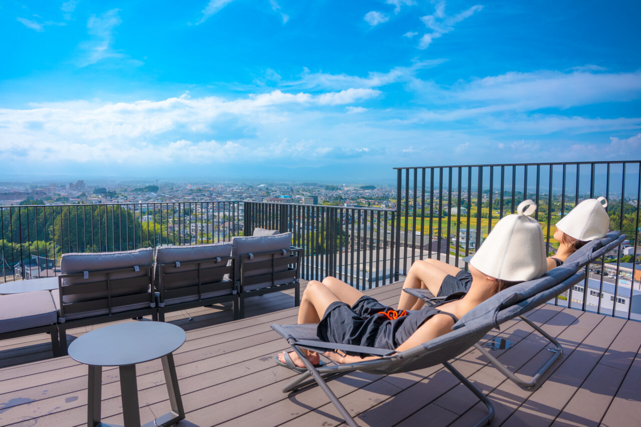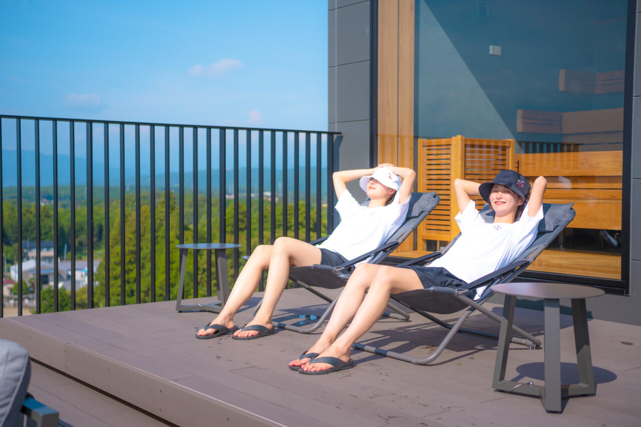 開放感あふれる空を見ながらゆったり過ごすことができます。サウナーカップルなら必ず来たくなる良いサウナ空間でした。