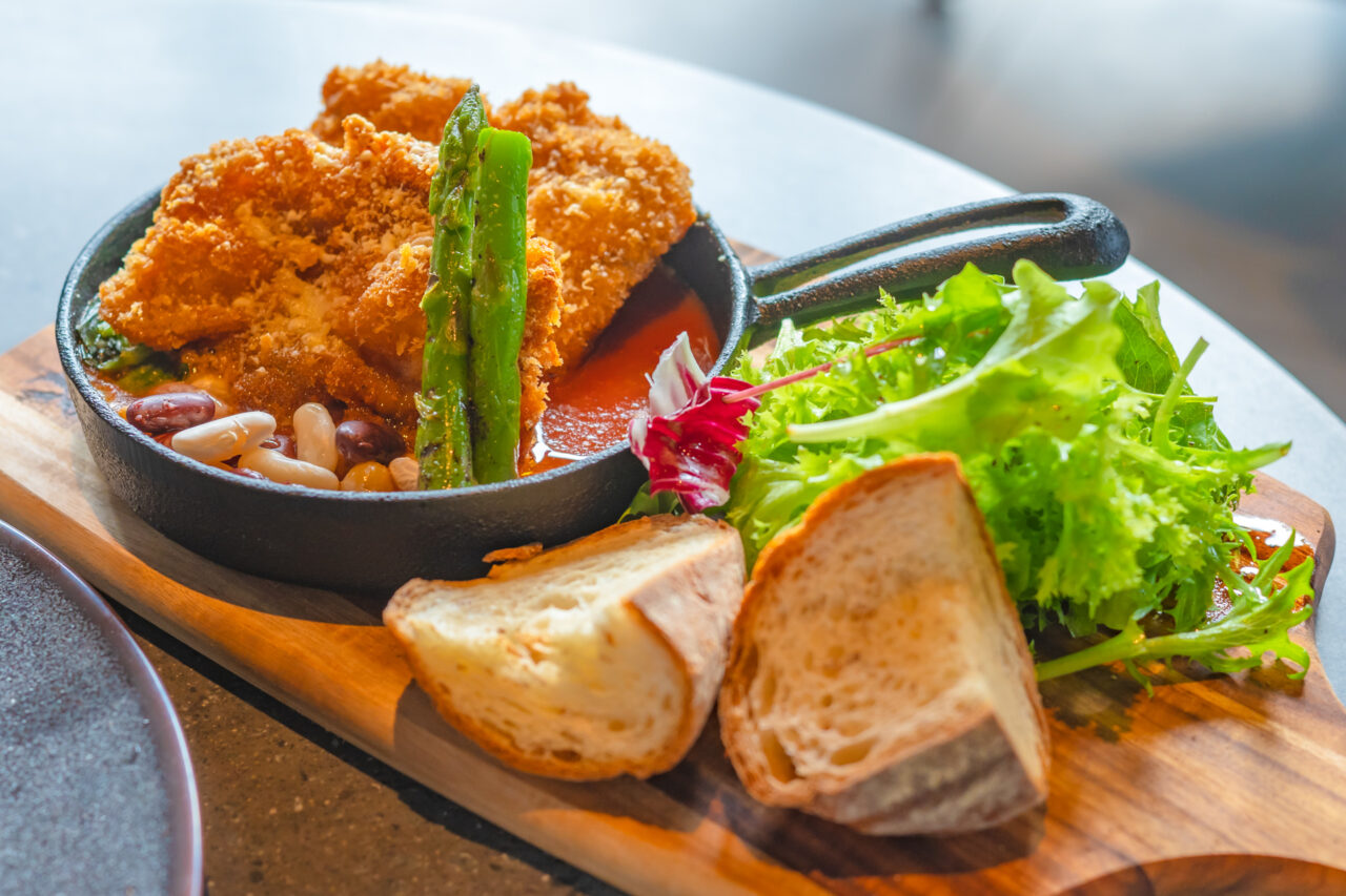 地元食材も使ったメニューがあるカフェダイニングの料理が、見た目も華やかで、味はさらにその期待を上回る美味しさです。