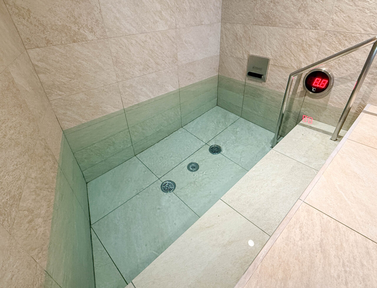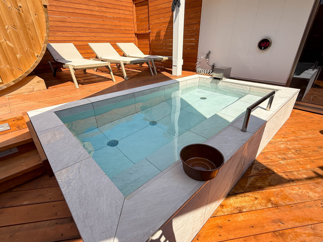 水深は90センチ以上。サウナでアチアチに蒸された身体を一気に冷却し、より深いリラクゼーションへと誘ってくれます。