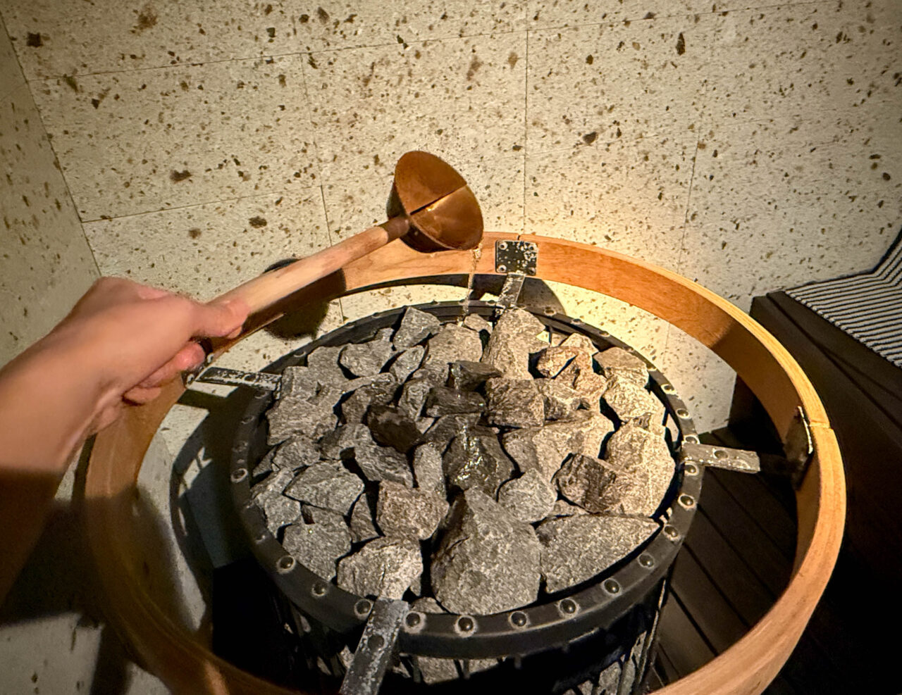 オートロウリュは10分間隔と短いスパンで作動。湿度がたっぷりあるので、息苦しさを感じることなくラストまで駆け抜けられます!