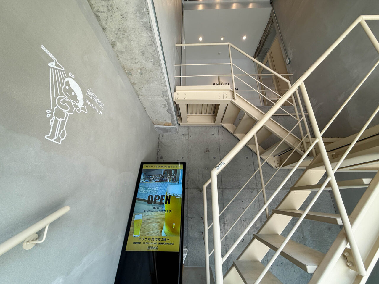 サウナの利用者は、階段で2階へ!