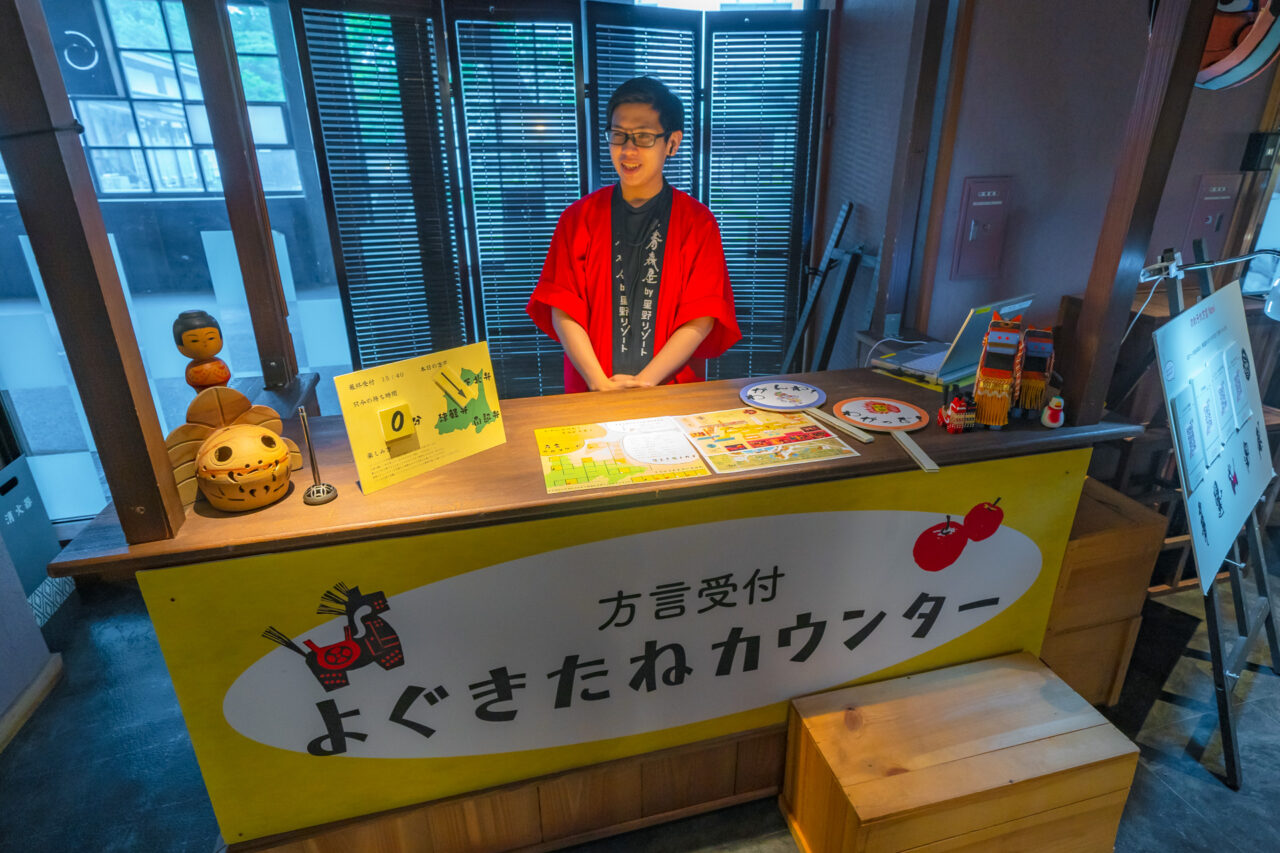 青森出身の従業員さんが方言(津軽弁・南部弁・下北弁)で館内を案内してくれる『よぐきたねカウンター』があったり、