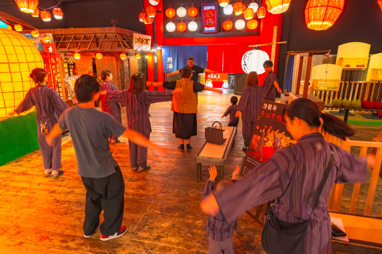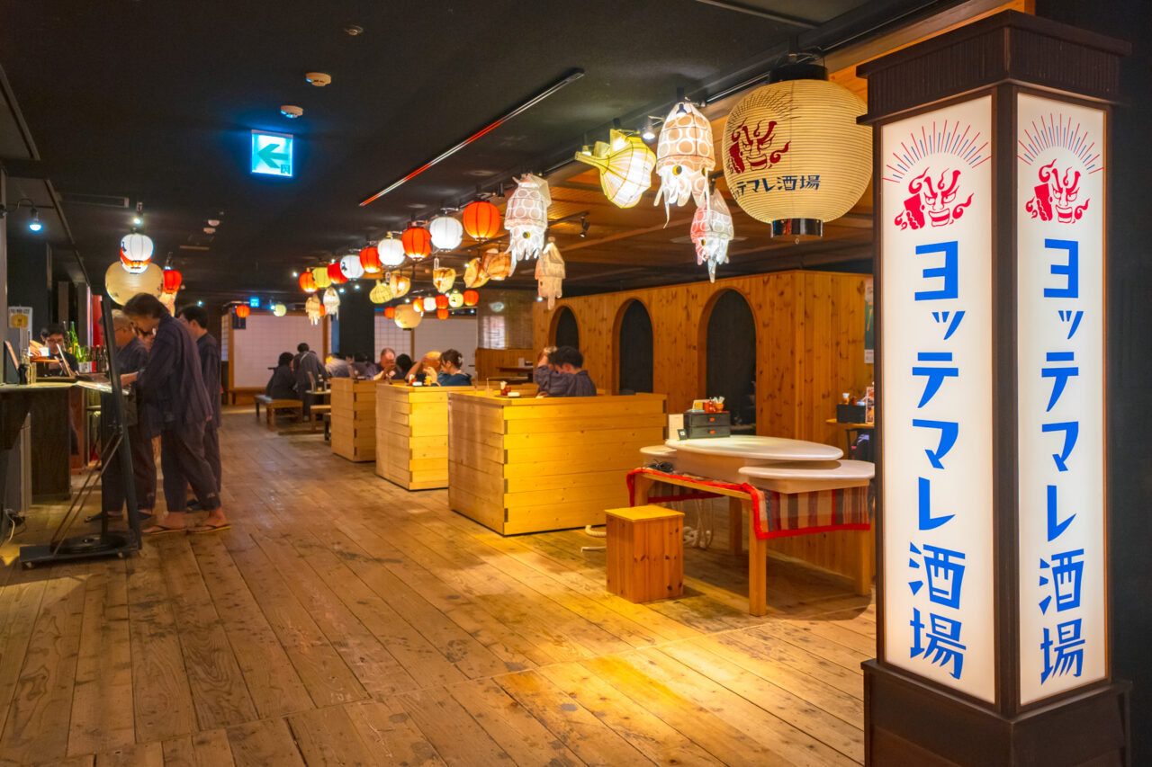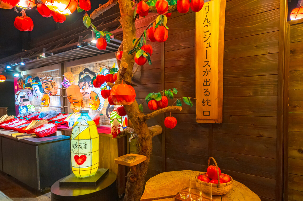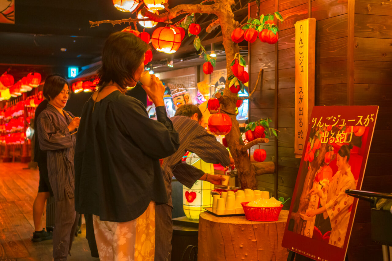 夜には『ヨッテマレ酒場』がオープンするので青森のお酒やおつまみを楽しむこともできますし、カラフルな浴衣を借りて屋内縁日のような気分で1日楽しめる場所でした。