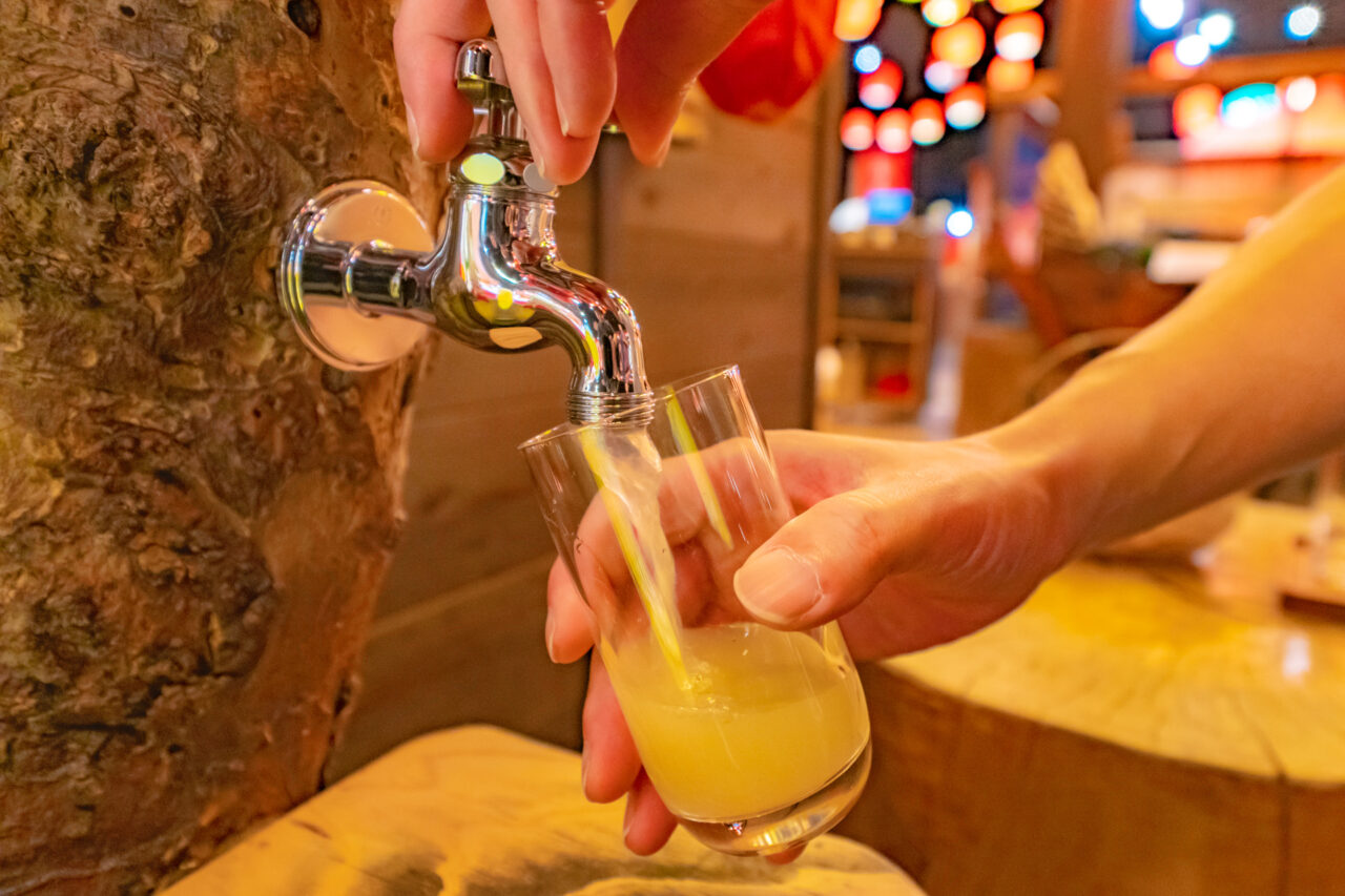かの有名な『りんごジュースが出る蛇口』は大人にも子どもにも大人気。