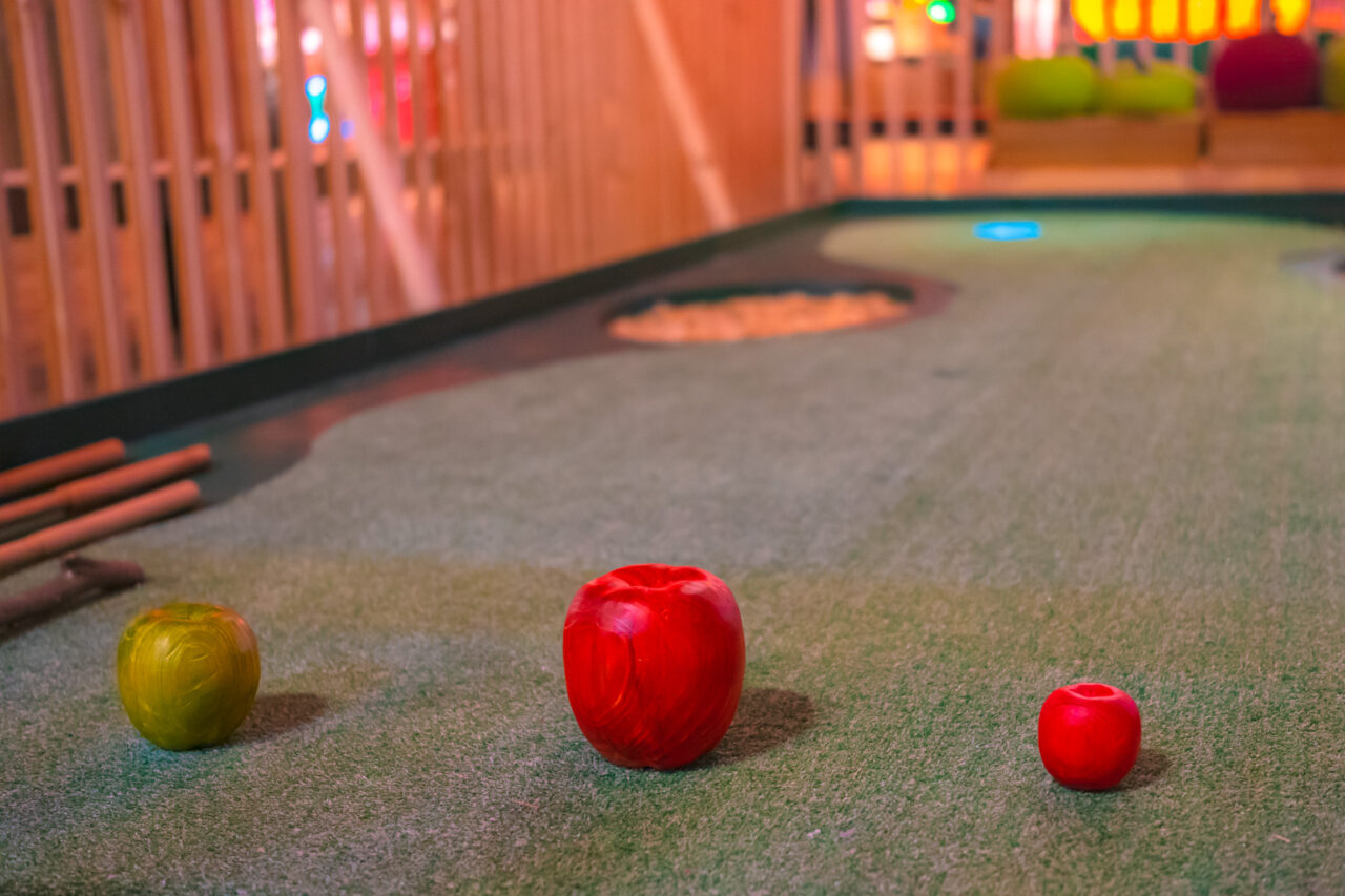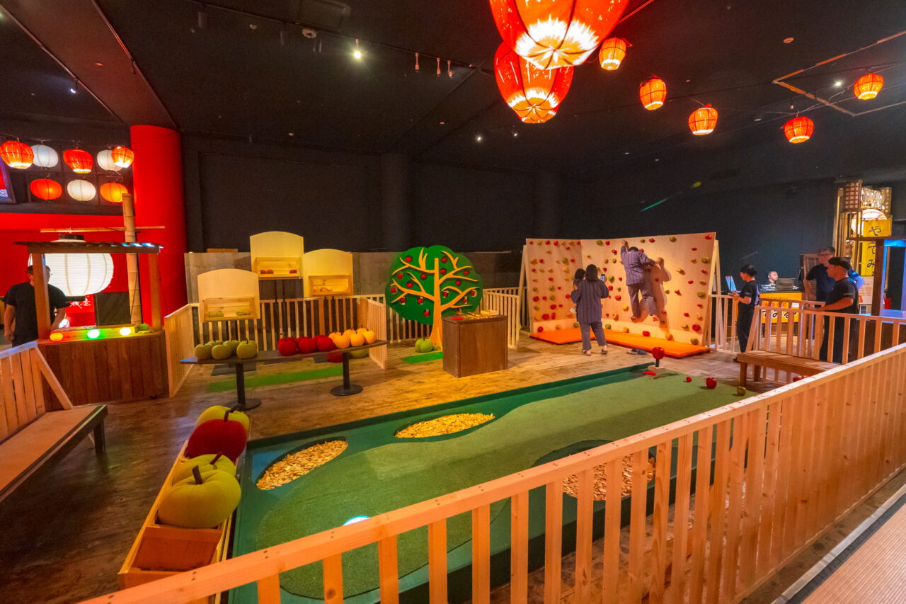 現在開催中の『収穫りんごラリー』は、パターゴルフやボルダリングや射的やバスケの道具が全てりんご型になっているんです。