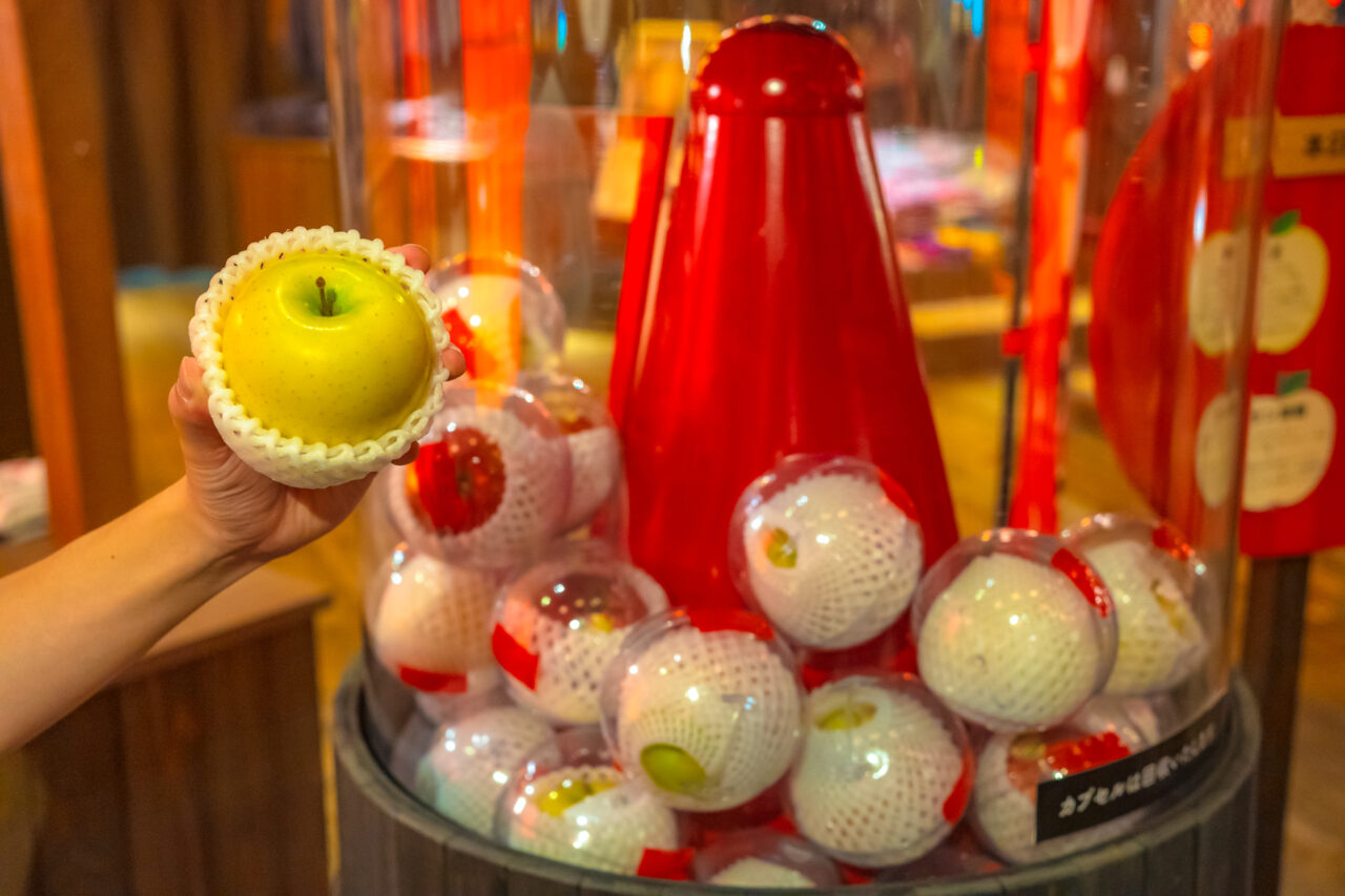 ジュースではなく生のリンゴが食べたくなったら巨大なりんごガチャガチャを回してくださいね。(りんごガチャガチャの開催期間は2025年9月1日〜11月30日です)