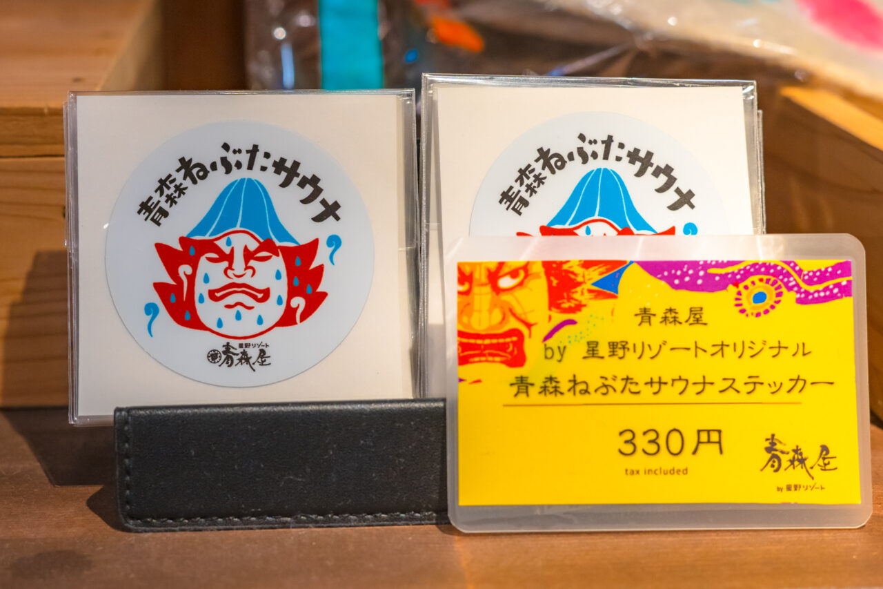 オリジナルグッズの、金魚ねぷたと花笠をモチーフにサウナハットやステッカーもかわいいので、青森ねぶたサウナが気に入った人はお土産にぜひ買っていってください!