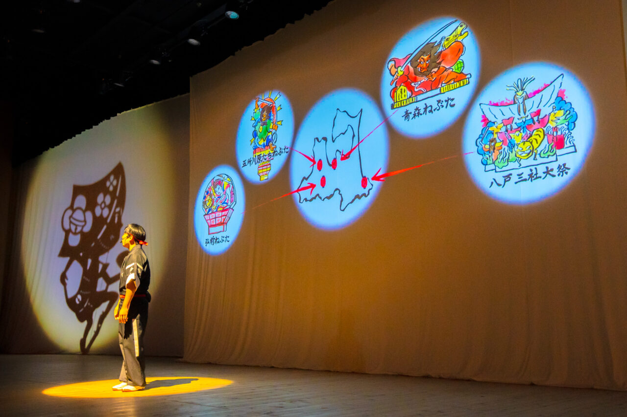 まずは影絵のキャラクターと共に、青森のお祭り文化の説明をしてくれます。