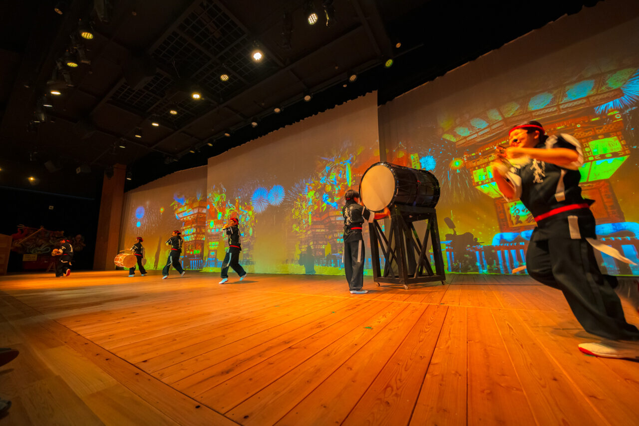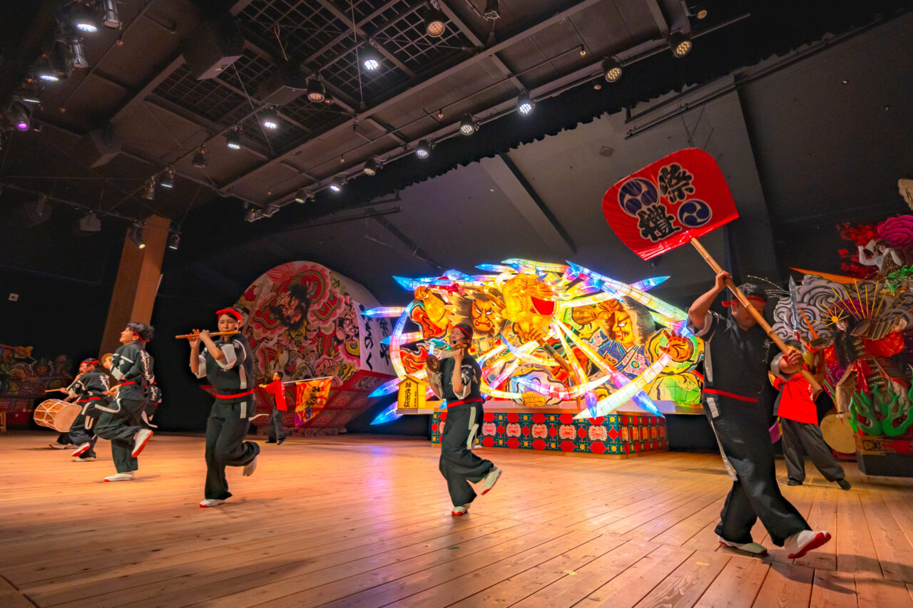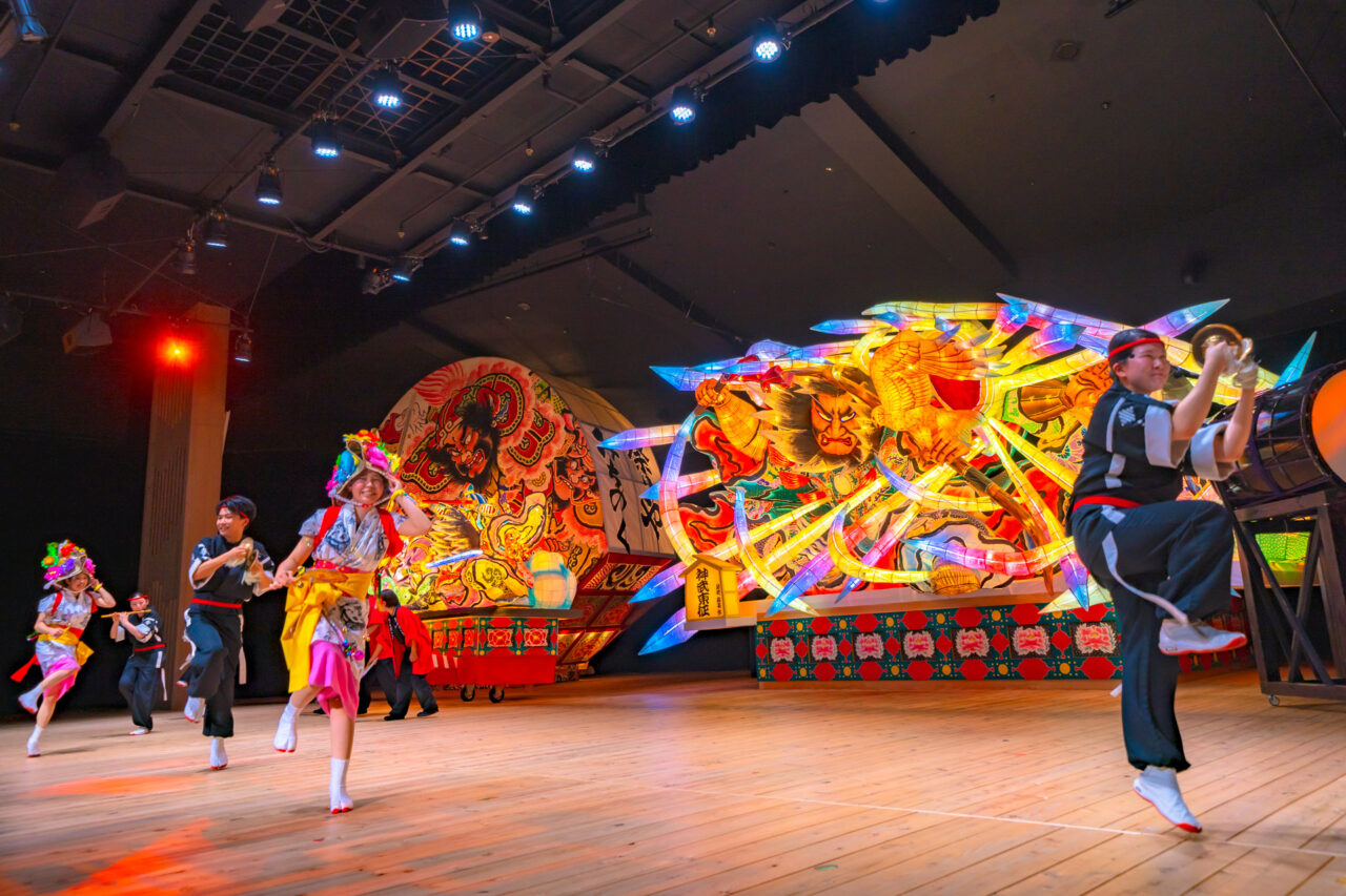 館内のシアター『みちのく祭りや』では、青森の四季の情景と祭りの熱気を表現するオリジナルのショーが365日毎日午後9時から開催されています。