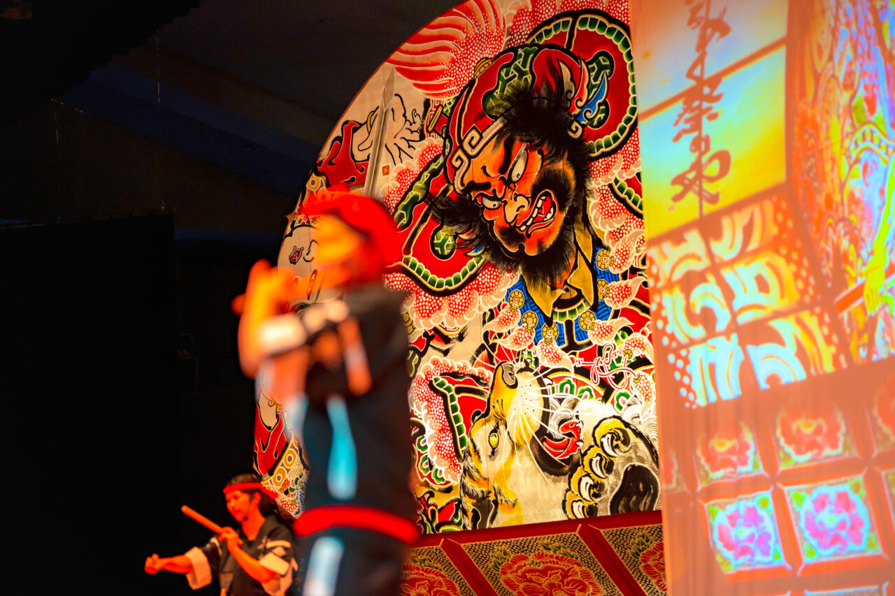 盛り上がりに合わせ、実際にお祭りでも使われた実物のねぷたが出現。その美と迫力に会場もどよめきます。