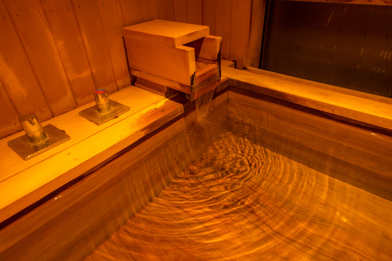 深夜にゆっくり入る青森ヒバ風呂で旅の疲れを癒やしちゃってください。