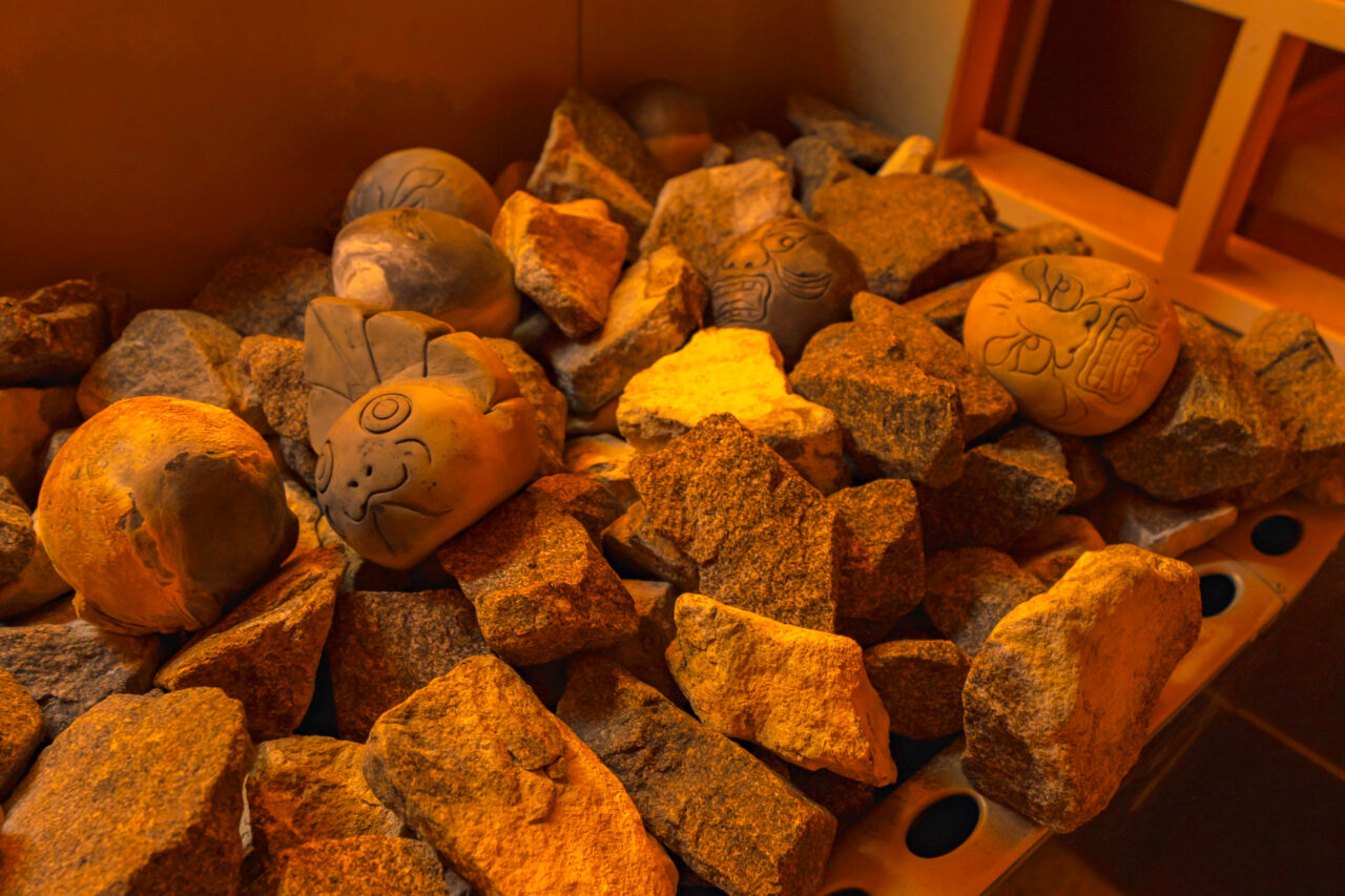 特大サイズのフィンランド製HARVIAストーブには、ねぶたをモチーフにしたオリジナルのサウナストーンが置かれているのでそちらもお見逃しなく。