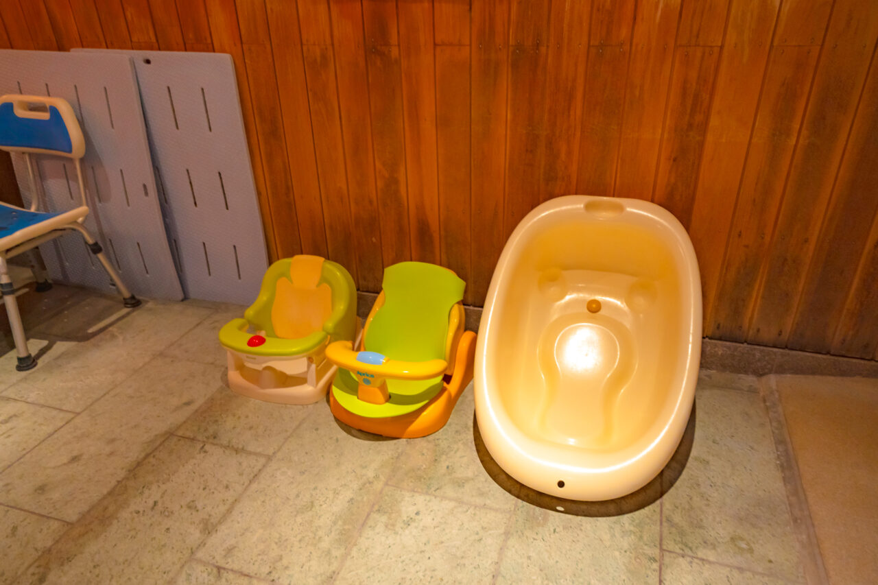 ちなみに脱衣場も非常に広く快適で、子ども向けのアイテムの貸し出しもあります。
