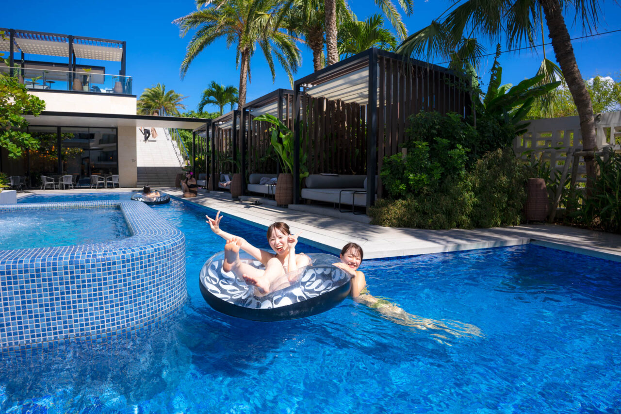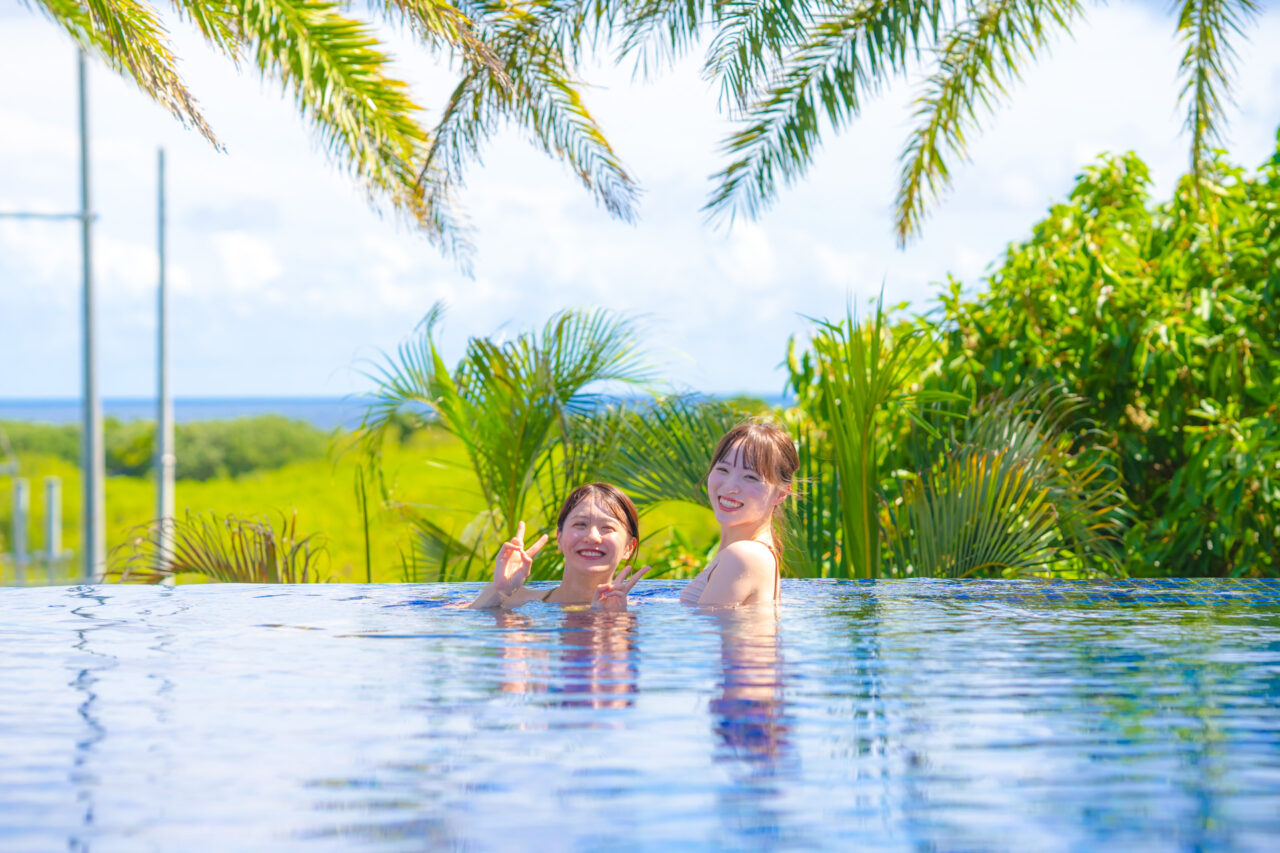2階エリアは20歳以上限定のインフィニティプールになっており、より落ち着いた雰囲気の中、石垣島の空と海と木々をいっぱいに感じられます。