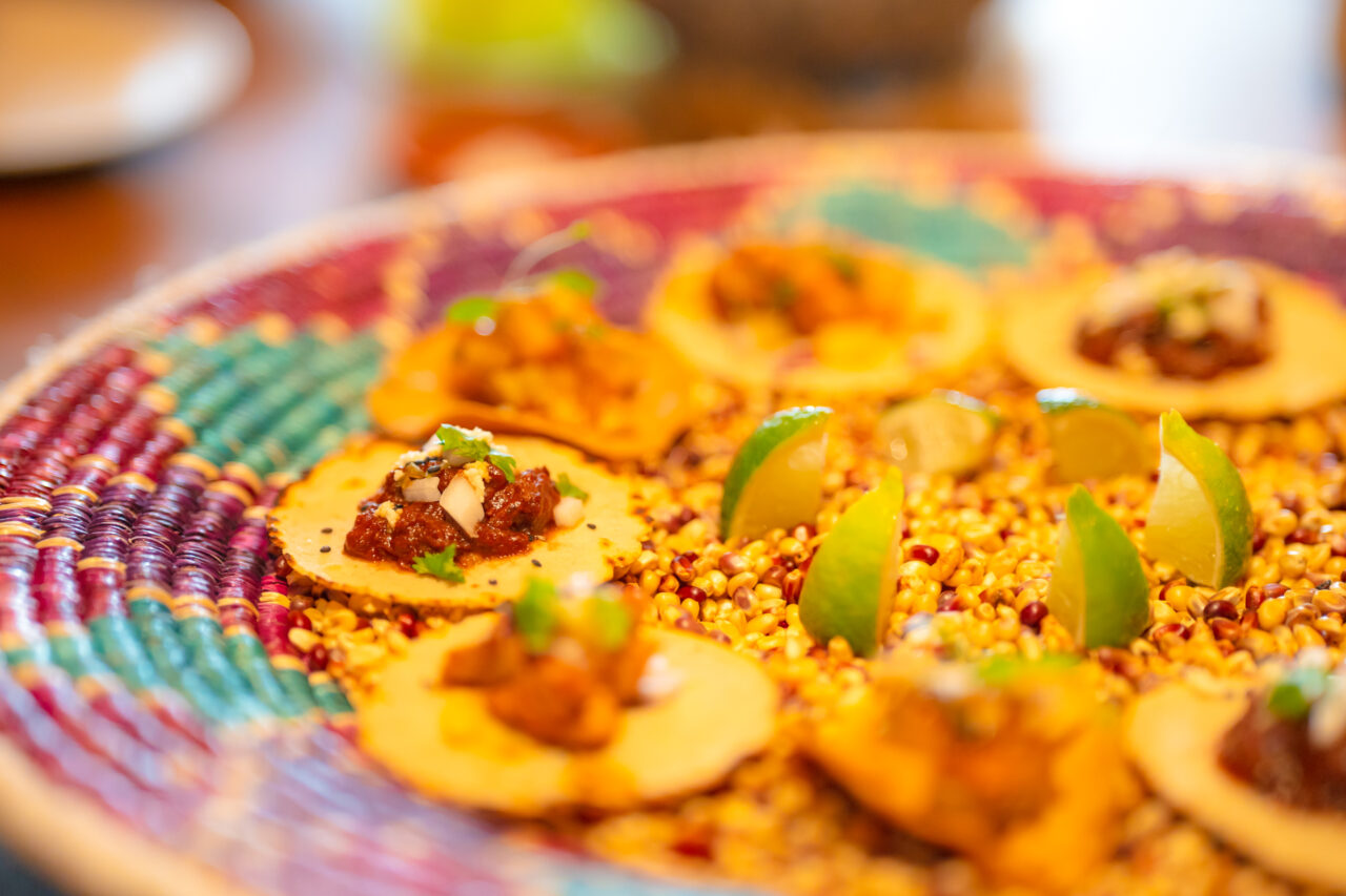 見た目からインパクト大で、3種類のタコス(島かぼちゃのスターダ、南ぬ鶏のスパイシーグリルタコス、石垣産山羊のビリアタコス)は全部驚きのおいしさ。