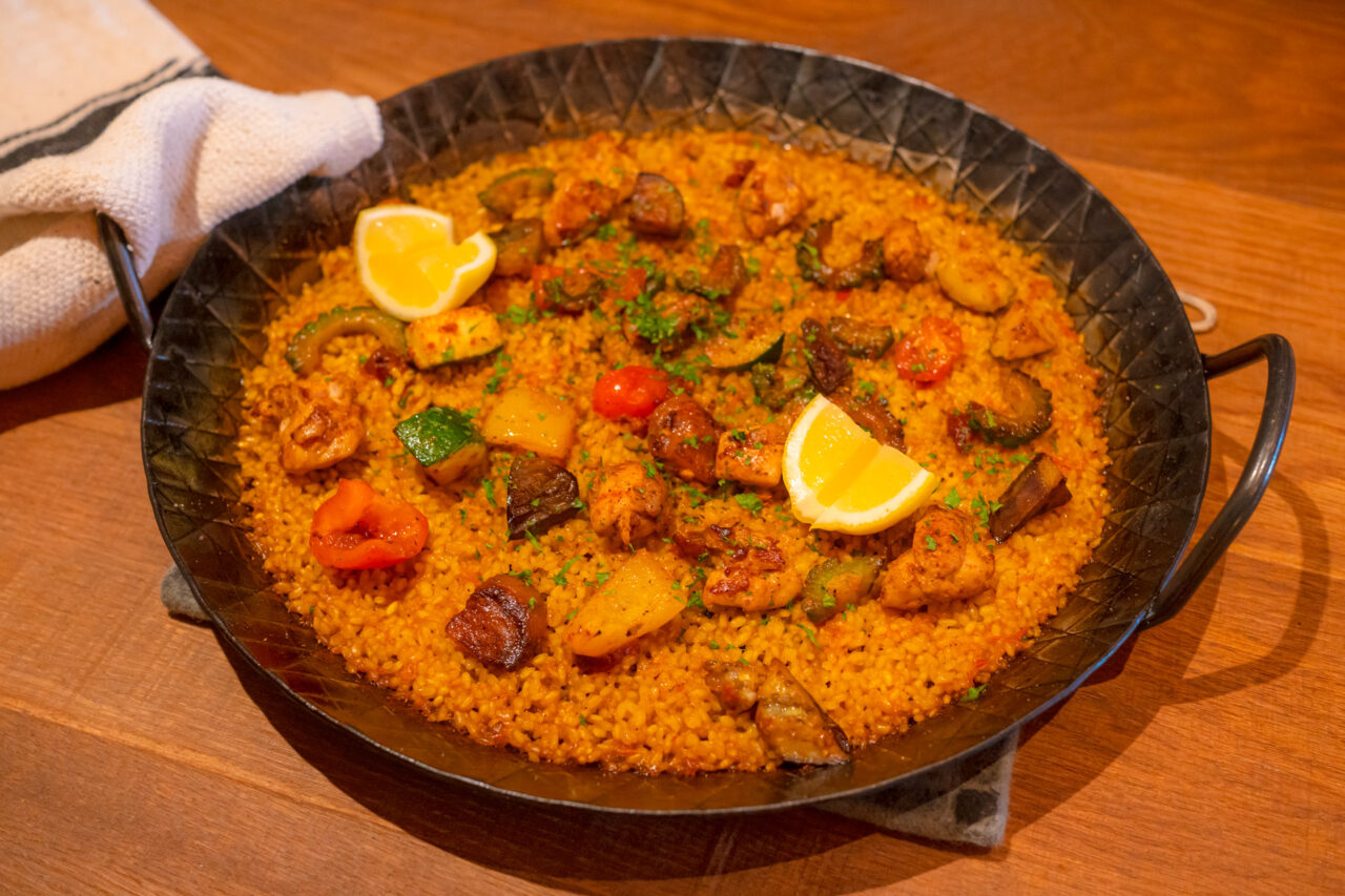 パエリア発祥の地、スペインバレンシアの調理法の完璧な比率で作っているため、サイズも分量も固定で、オーダー後に40分かけて作られます。