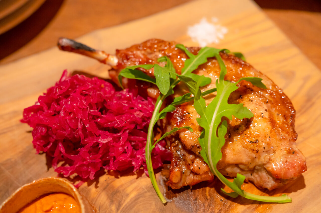 脂身だけでも美味しい甘みのあるお肉を、ピザ窯の熾火でじっくり柔らかくする感動のお肉です。