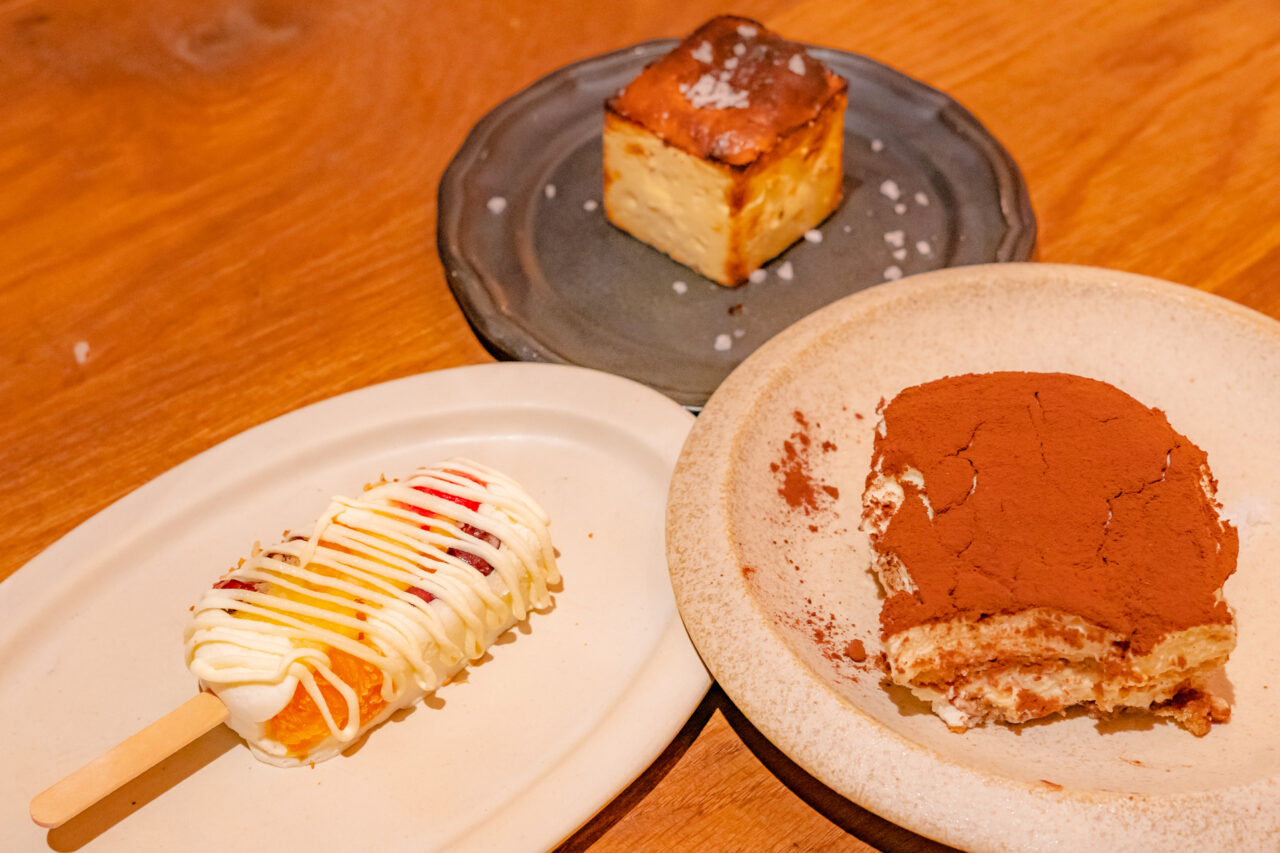 実家のケーキ屋さんでの経験と、レストランでの経験を併せ持つスーシェフによる、泡盛のティラミス、バスクチーズ、しろくまアイスです。