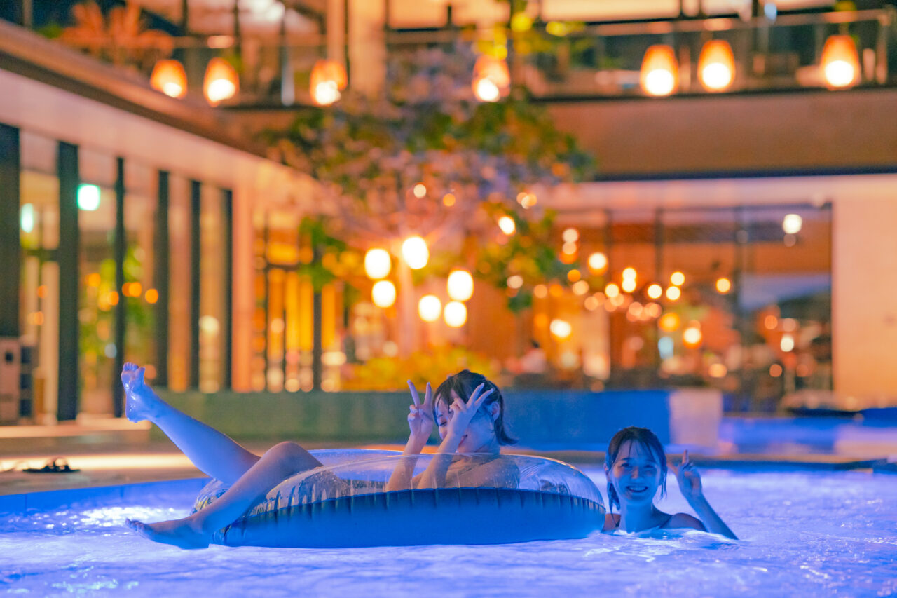 夜はプールがライトアップされ、ナイトプールに変化します。