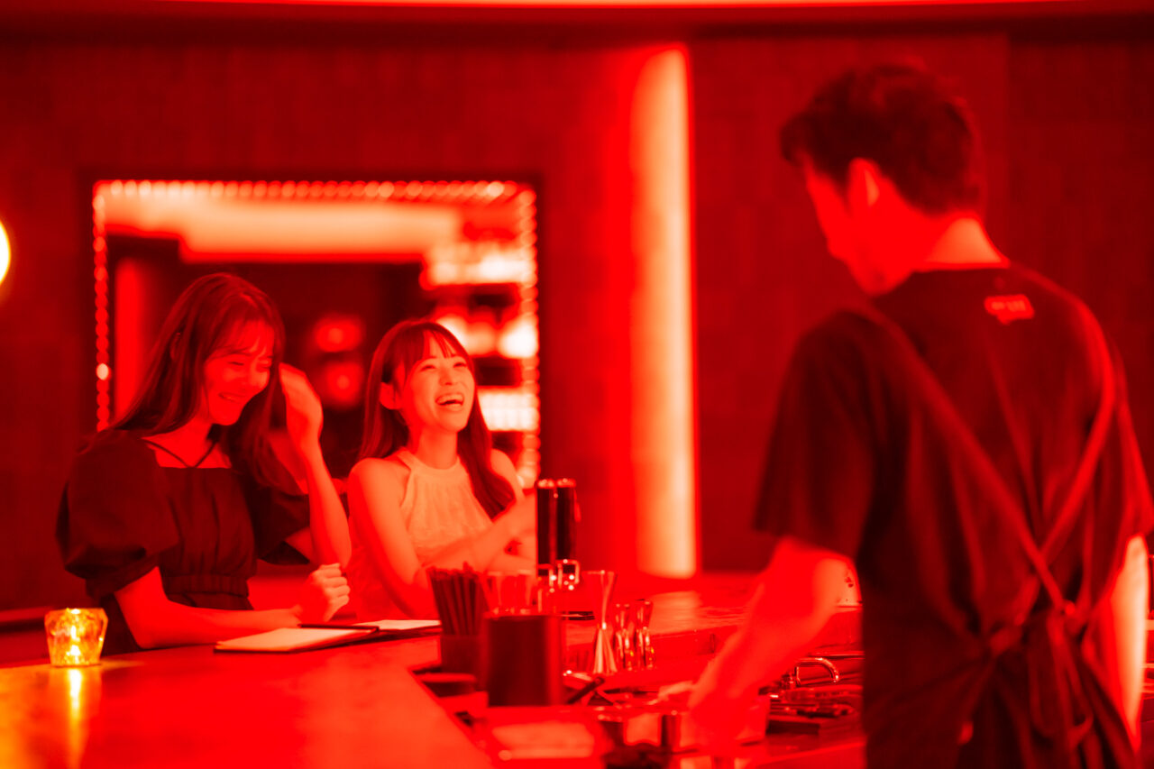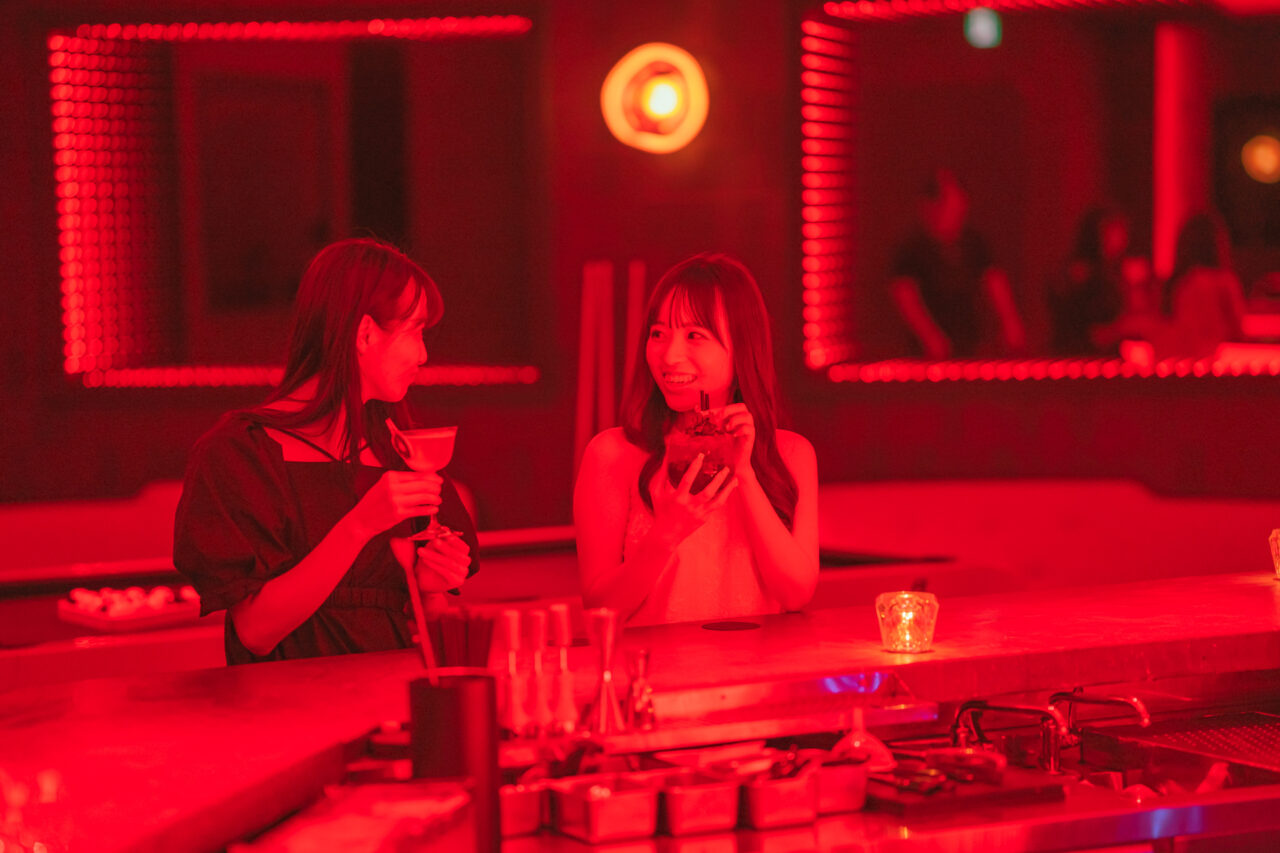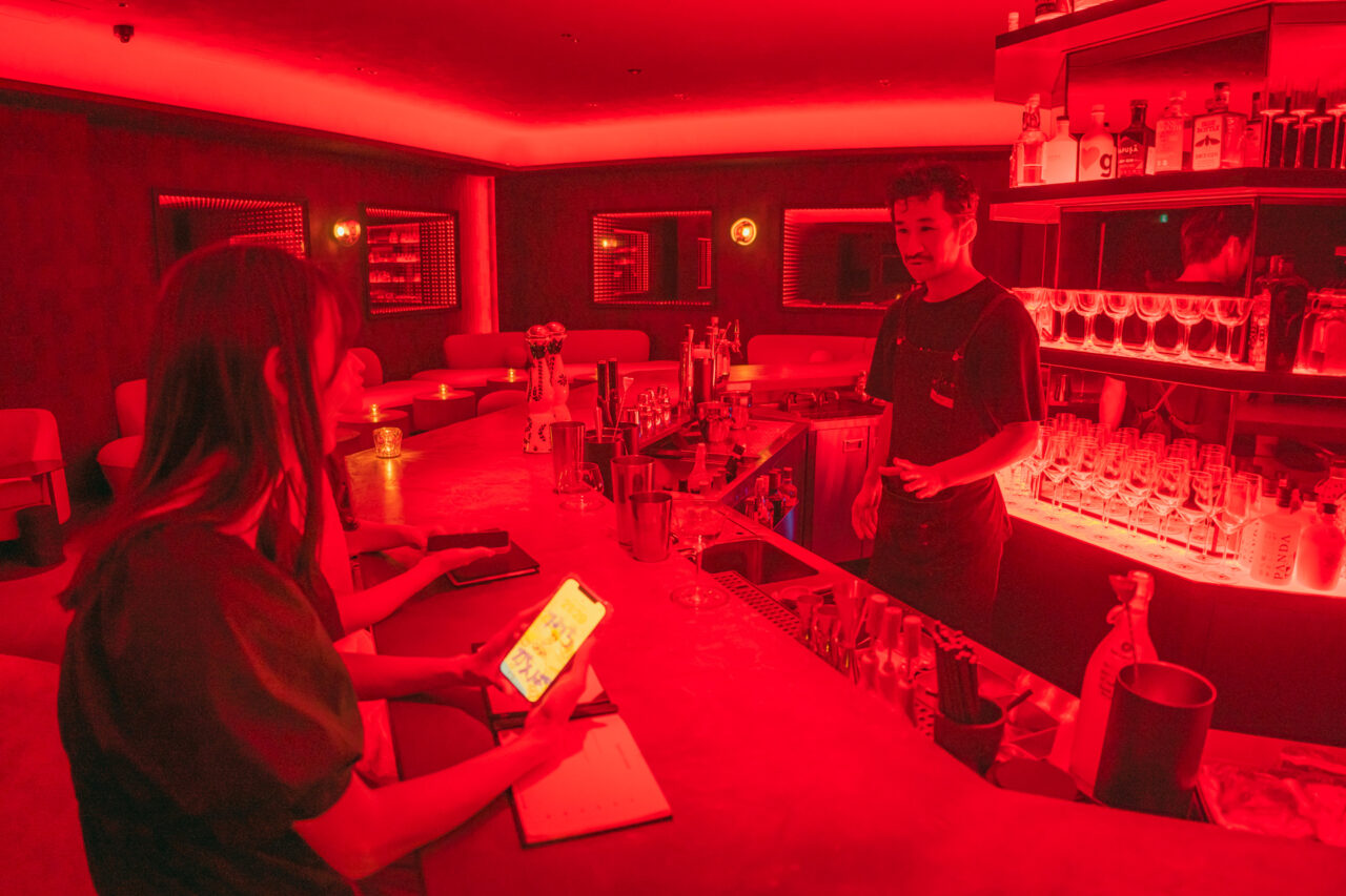 店内は赤の照明のみで照らされ、没入度が高いかなりの非日常空間になっています。