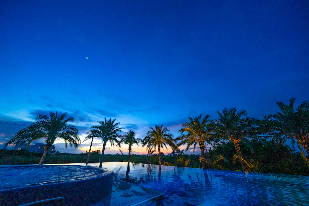 夜のコンテンツも充実しているseven x sevenでは、青く輝くナイトプールと対照的な大人の隠れ家が19時から深夜2時までオープンします。