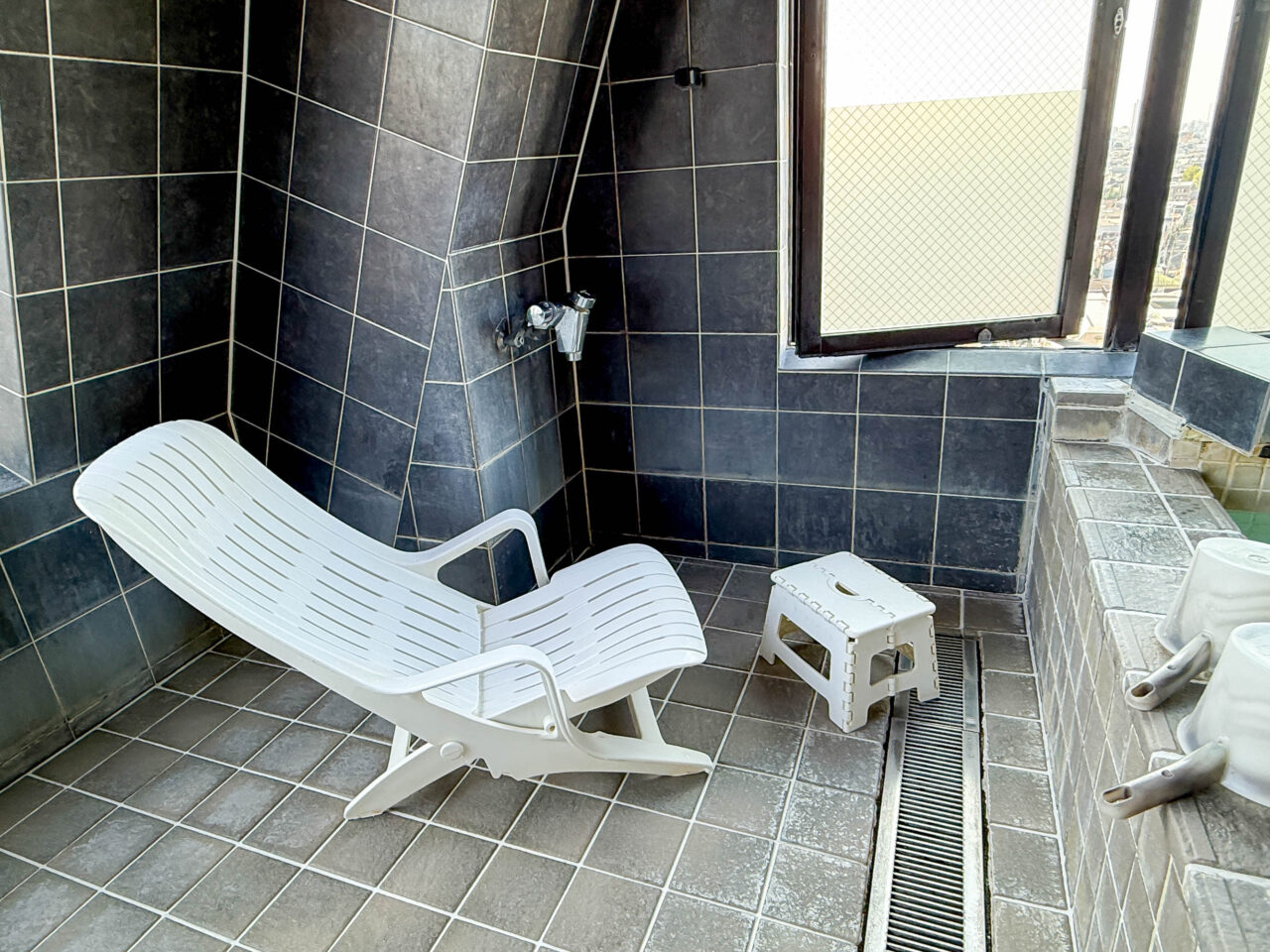 個人的に大優勝だったのが、湯船側のイス!目の前の窓から外気がふわ〜っと入ってくるスポットです。至福。
