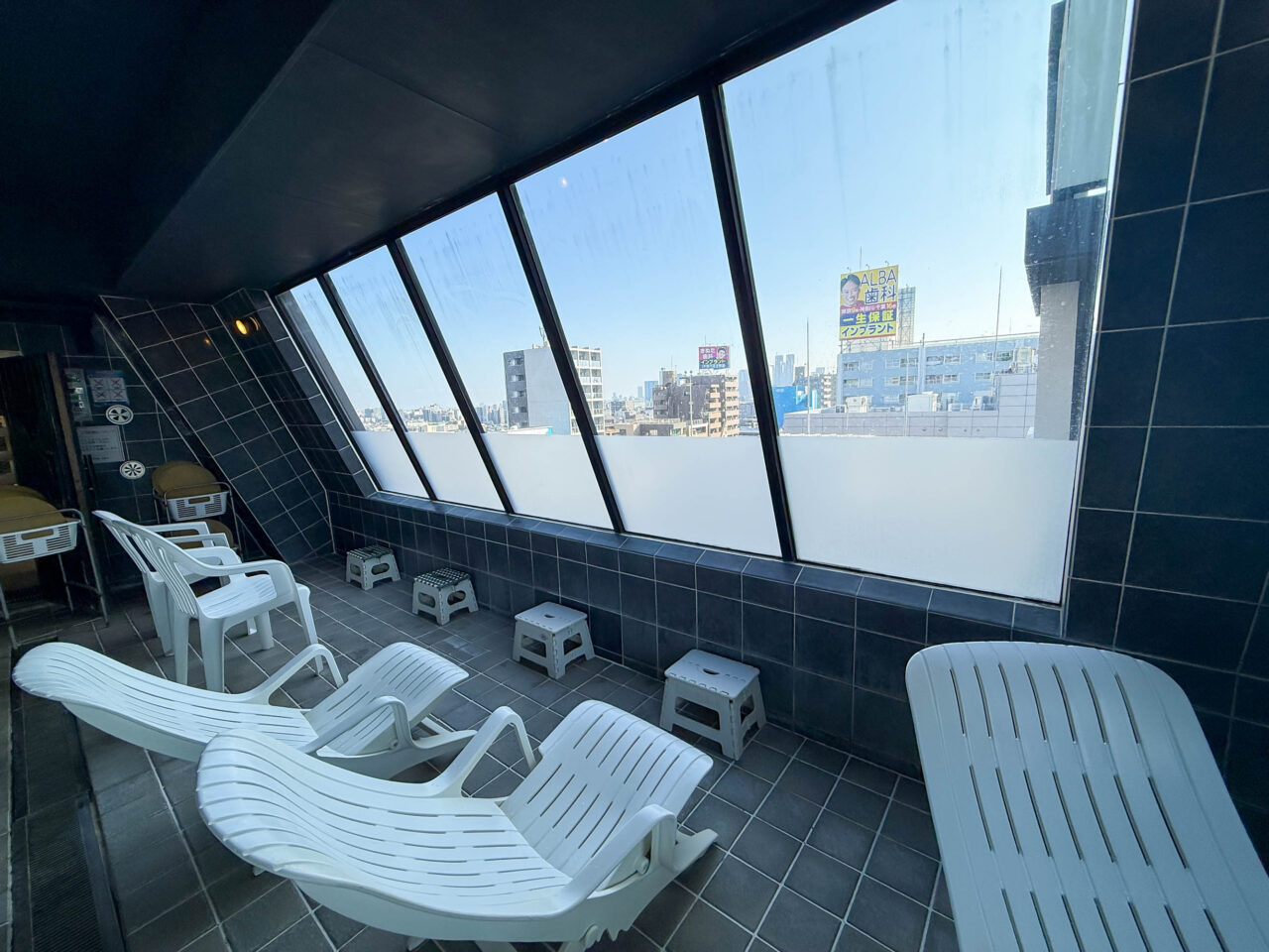 4.抜群の眺望!電車の音でととのう「内気浴スペース」
