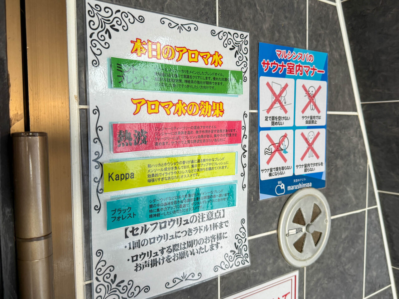 セルフロウリュ用に「アロマ水」が用意されているのもうれしい!