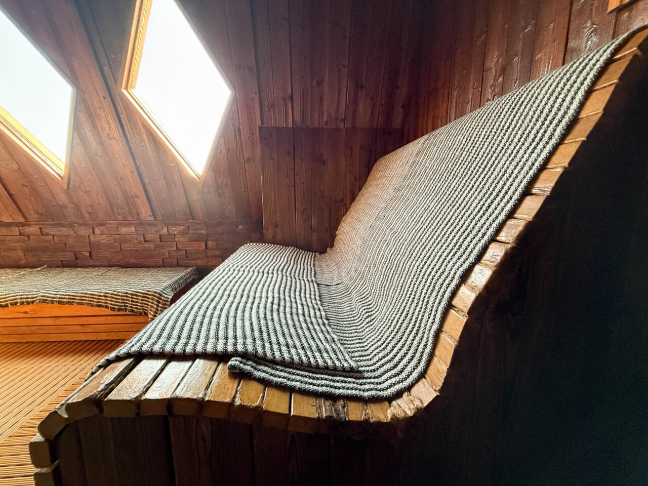 筆者は、カーブ調のベンチが大変好みでした。サウナに入りながら外の景色を楽しめるなんてうれしいな〜。