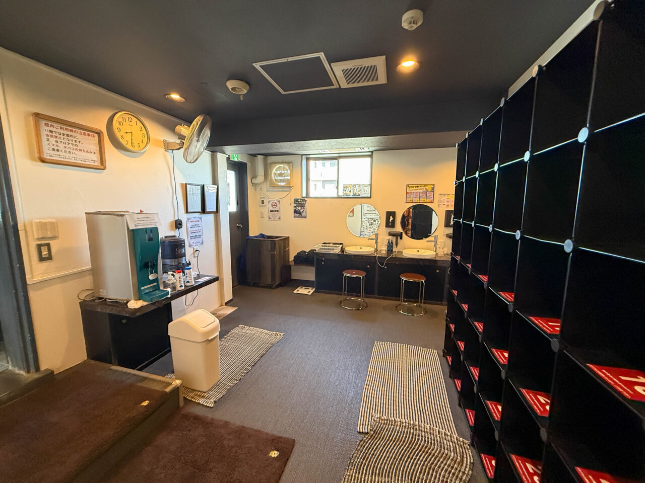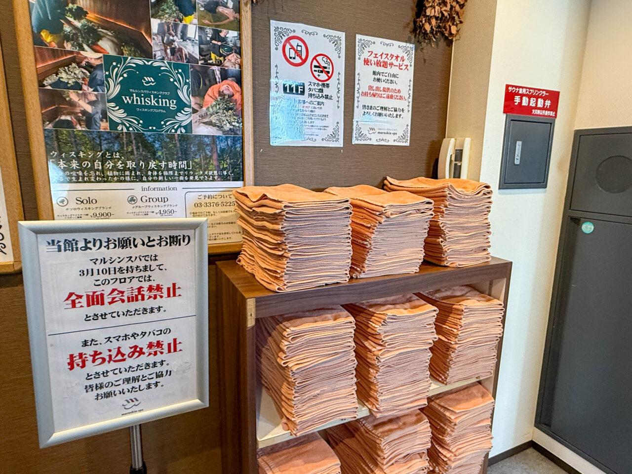 脱衣フロアには、自由に使えるフェイスタオル、アメニティ、給水機がありました!仕事終わり、準備ゼロでもふらりと立ち寄れるのありがたいですね。