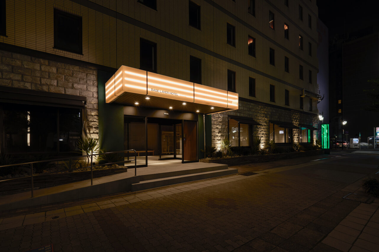 アウトドア用語の「ベースレイヤー(=肌に身につける基礎機能ウェア)」になぞらえ、「快適な滞在」と「楽しい街あそび」を両立するために必要な基本機能をすべて備えたホテルとして企画されました。単に宿泊するだけの従来型ビジネスホテルと一線を画し、街と人、人と人をつなぎ、地域の新たな魅力やカルチャー体験を提供するハブ的存在”を目指しています。